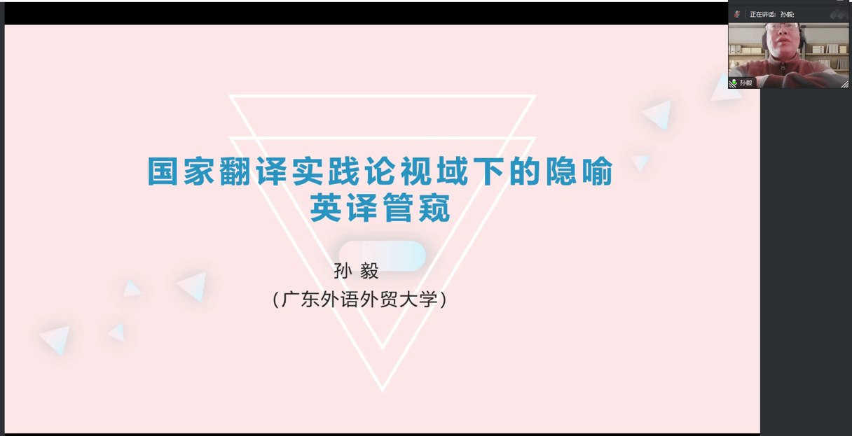10月24日,国家社科基金项目评审专家、广东外语外贸大学云山杰出学者、博士生导师、博士后合作导师孙毅教授应邀为ok138cn太阳集团529师生做了一场精彩的线上学术讲座《国家翻译实践论视域下的隐喻外译研究》。ok138cn太阳集团529教师和MTI学生参加讲座,讲座由副院长刘方荣主持。