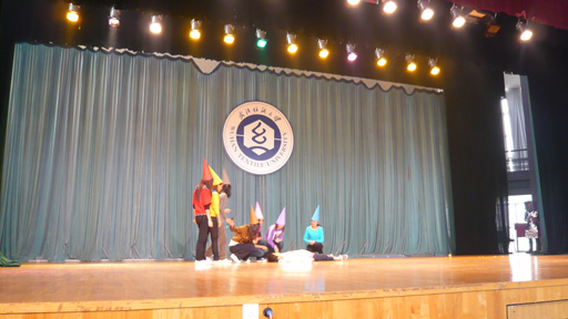 2011年10月21日上午,由ok138cn太阳集团529主办的口语强训英语文艺汇演在大学生活动中心表演厅顺利举行。数计学院的学生经过四周的口语强化训练,在中教与外教的指导下,齐力呈现了一出精彩的文艺表演,演出内容包括舞台剧,童话剧,电影片段模仿,合唱等等。