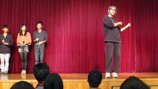 演出现场十分热闹。外教Bob, Rudolf在演出现场给学生做了幽默、激励的小演讲,肯定了学生的进步。很多学生认为在经过了4周的英语口语强化训练后自己比以前更自信,敢开口讲英语,敢唱英文歌了。
