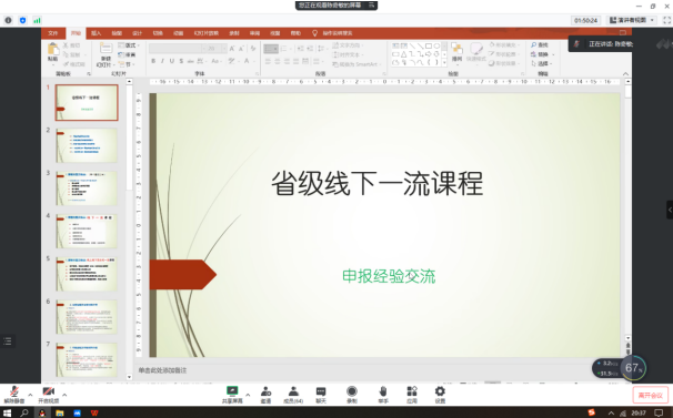 陈奇敏副教授就省级线下一流本科课程《汉英笔译》做了申报经验分享,她介绍了五类一流本科课程的课程类型及特点、申报流程及申报材料、申报书基本结构及填写要求,重点展示了申报书各部分内容和教学设计样例的填写、修改过程。她建议大家要细读评审表,内容填写要具体,数据要详实,术语要规范,表达要清晰高效。她的经验分享干货满满,让老师们深受裨益。