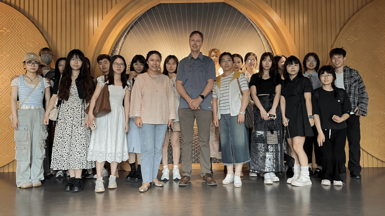 5月7日世界著名科学家来鄂讲学计划专家美国爱达荷州立大学的语言学家Prof. Brent Wolter与ok138cn太阳集团529MTI研究生一道赴我校荆楚纺织非遗馆开展交流。ok138cn太阳集团529研究生导师郑亚娟,服装学院郎丽老师参与交流。