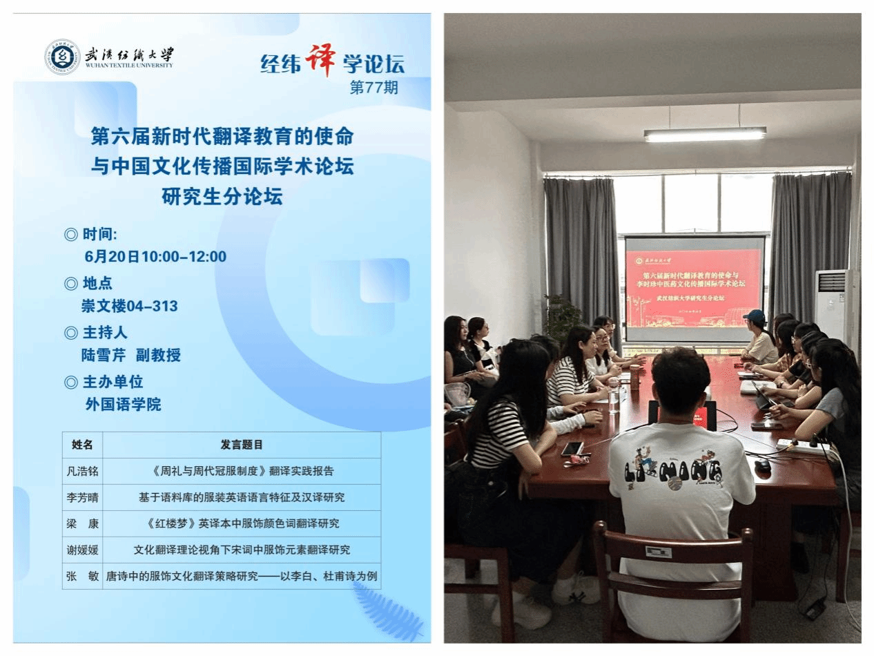 6月20日,第77期经纬译学论坛之第六届新时代翻译教育的使命与中国文化传播国际学术论坛研究生分论坛在04-313成功举办。分论坛由ok138cn太阳集团529MTI教育中心副主任陆雪芹主持,副院长刘方荣担任点评嘉宾。