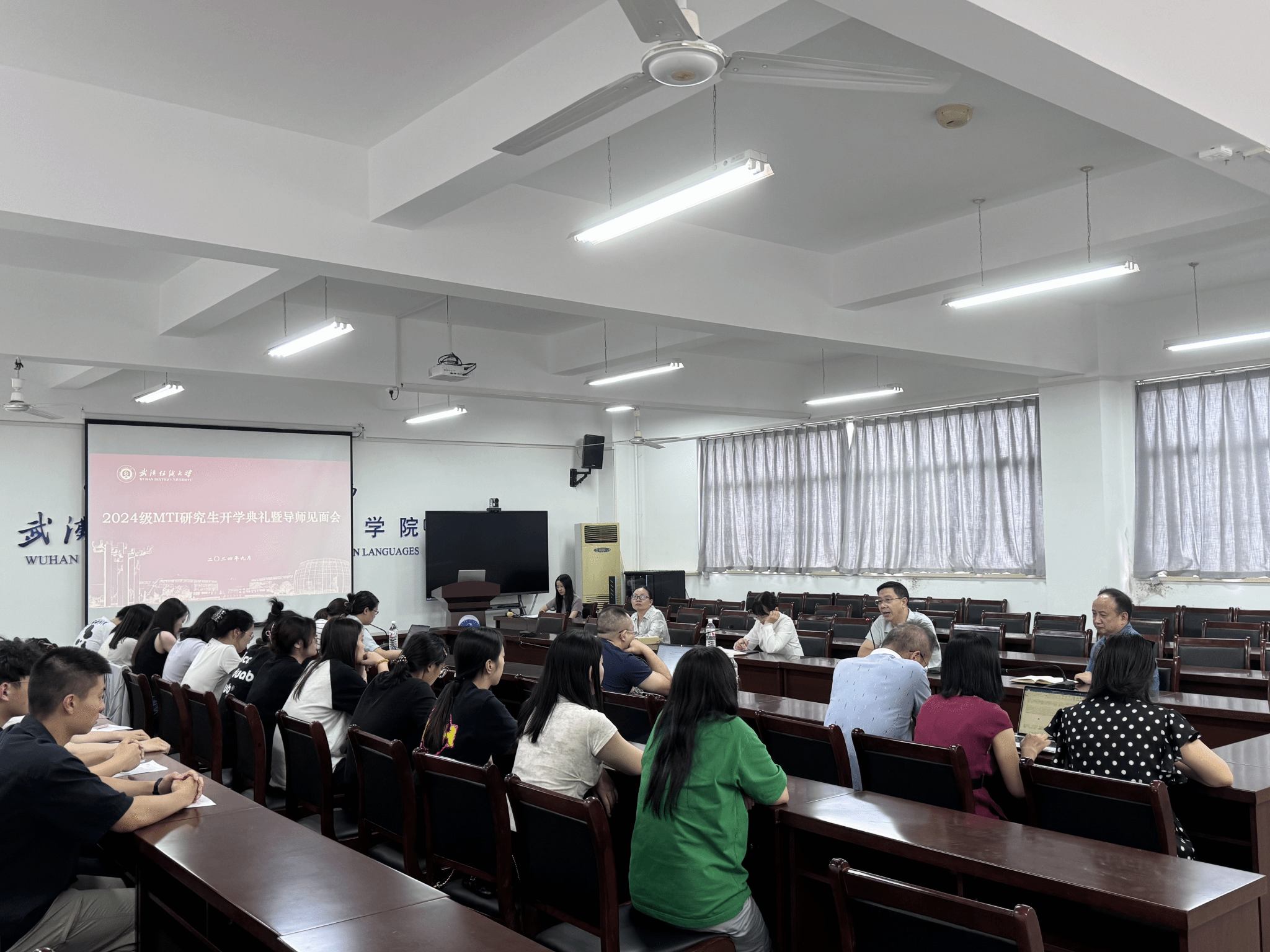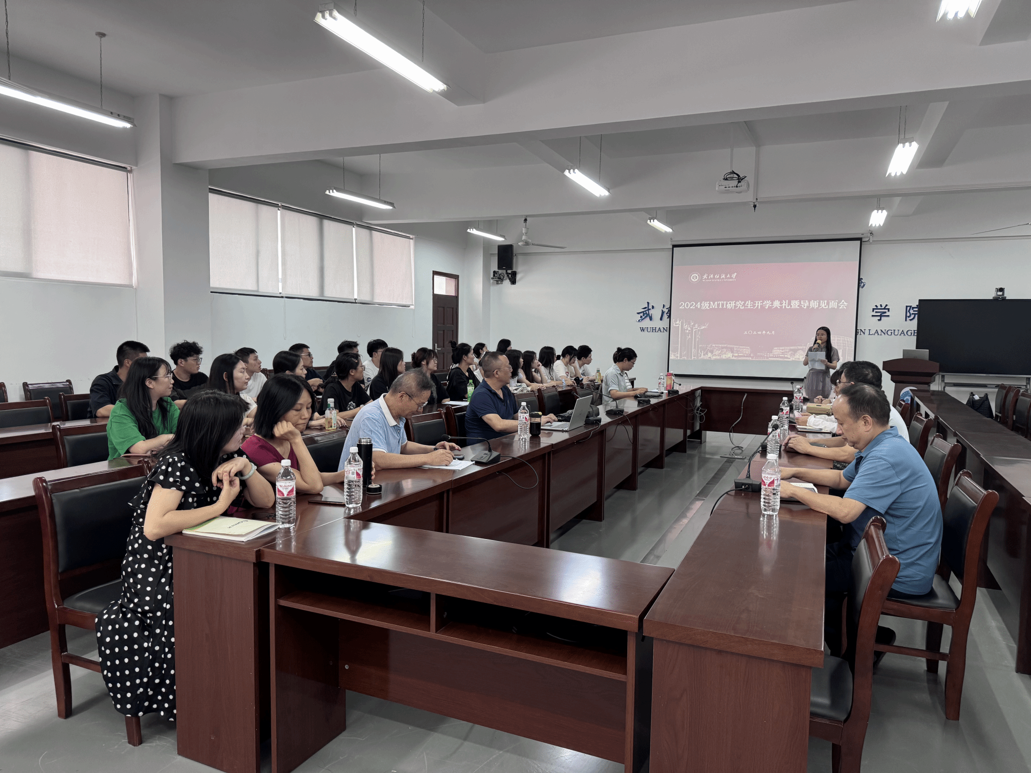 9月11日下午,2024级MTI研究生开学典礼暨导师见面会在崇文楼303会议室举行。ok138cn太阳集团529院长谭燕保教授、党委书记胡中原、副院长罗绮伦、刘方荣,全体硕士生导师、2024级MTI研究生及23级研究生代表参加典礼。会议由MTI教育中心主任刘珊主持。