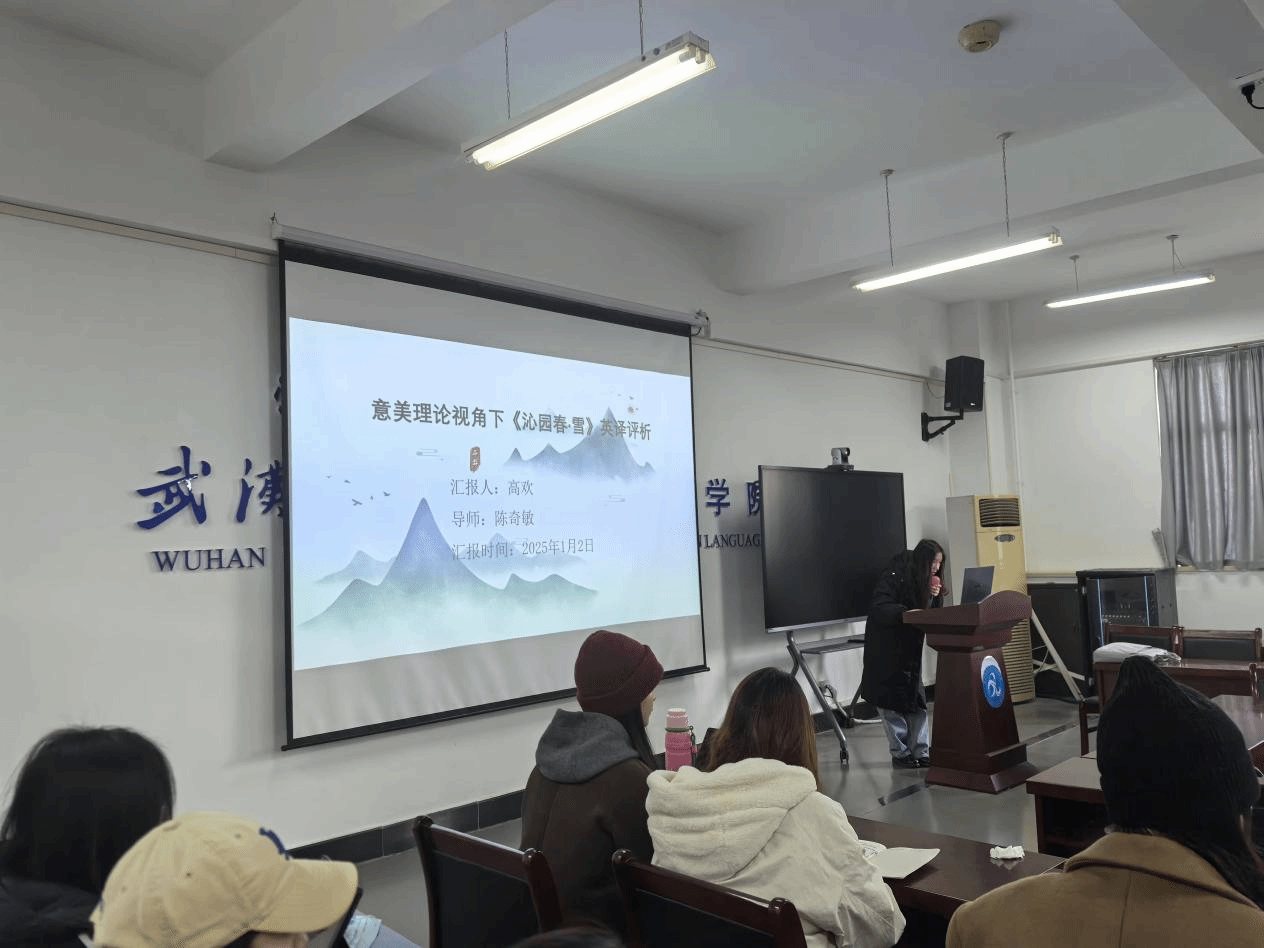 1月2日上午,ok138cn太阳集团529在崇文楼303教室成功举办第八十八期“经纬译学”研究生论坛。陈奇敏副教授为特邀点评嘉宾,蔡倩副教授担任本次论坛教师主持,24级MTI研究生彭紫依为学生主持。三位主讲人分别是23级MTI研究生高欢和24级MTI研究生孙康、夏静。23级、24级MTI研究生参加了此次论坛活动。