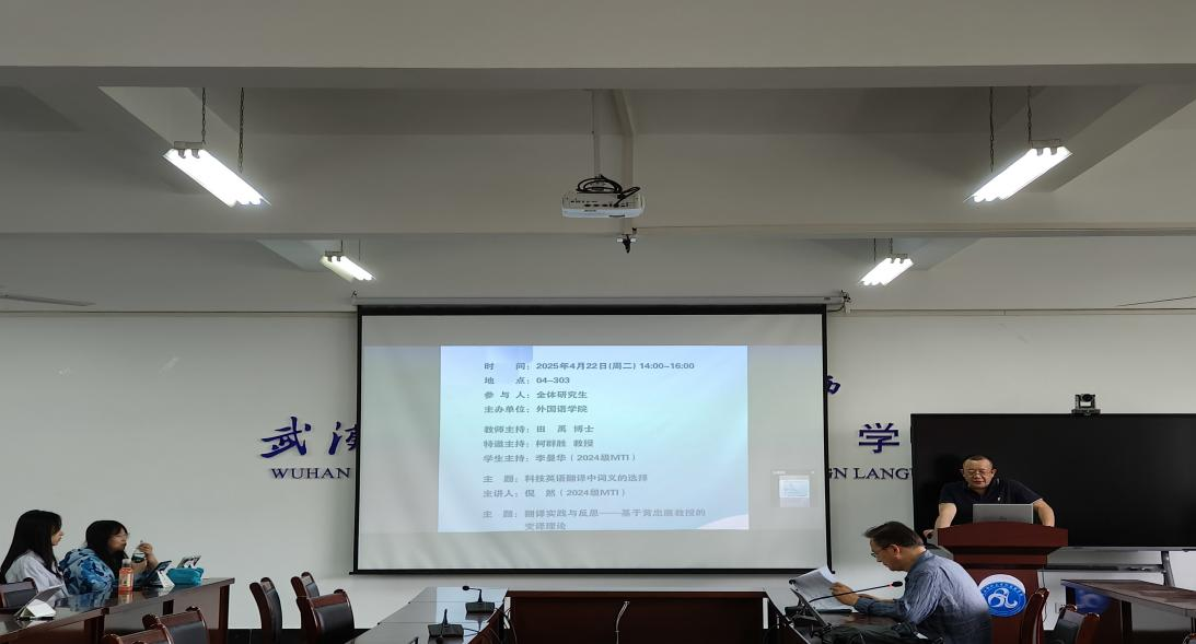 4月22日,ok138cn太阳集团529在崇文楼303教室举办了第九十三期“经纬译学”研究生论坛。柯群胜教授和田禹博士分别作为特邀点评嘉宾和教师主持,24级MTI研究生李曼华担任学生主持。倪然、黄赢纪、吴传琦三位24级MTI研究生在论坛上进行了分享。