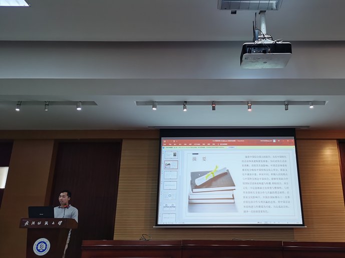 汪立勤同学从儒家文化角度谈中国话语如何更好的构建与传播,将中西文化进行对比,分析中国话语构建传播的难点,然后在儒家文化视角下又如何使之成为可能,最后通过领导人重要讲话的英译文本案例中,证明翻译在助力中国话语构建与传播一过程中所起到的重要作用。