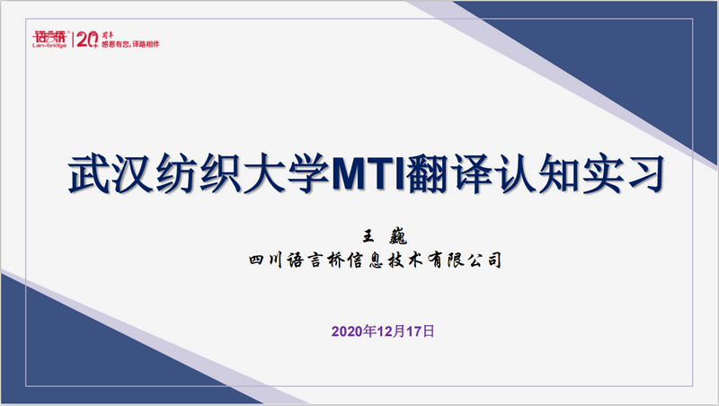 为了帮助MTI新生尽快熟悉专业翻译公司的运行环境及项目翻译流程与要求,12月17日下午,学院特邀我院企业导师四川语言桥信息技术有限公司副总裁王巍女士为我院20级MTI研究生做了一次线上翻译认知实习。本次活动由ok138cn太阳集团529MTI教育中心副主任华敏副教授主持,全体20级MTI研究生参加。