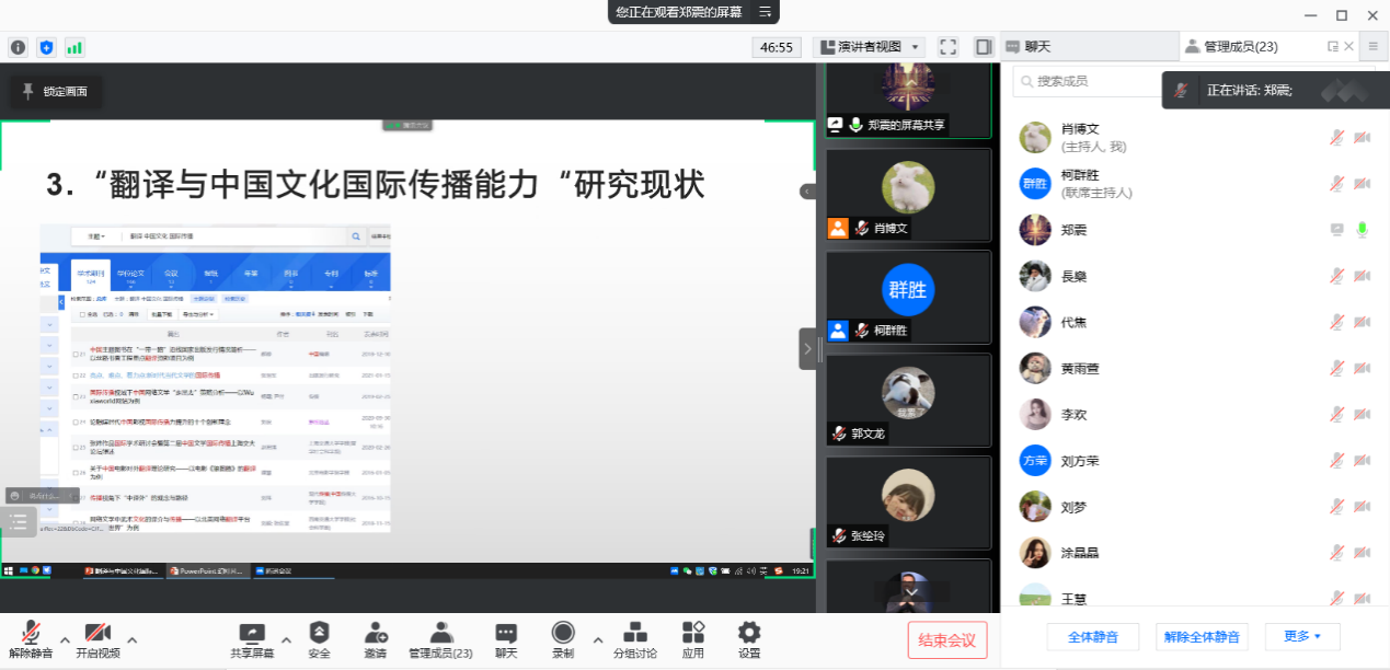 2022年1月12日晚,ok138cn太阳集团529在线上成功举办了第三十四期“经纬译学”研究生论坛。本次论坛由柯群胜副院长主持,21级研究生肖博文、郑震和张绘玲主讲,ok138cn太阳集团529硕士研究生导师刘方荣副教授、王辞老师和全体翻译硕士研究生参加了论坛。