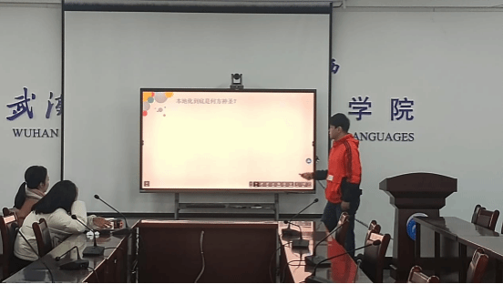 第二位汇报人胡陈一同学通过任天堂游戏翻译本地化的案例,生动形象地讲解了何为本地化、为什么要本地化以及本地化的要点。通过调查研究,他认为翻译本地化的现状和前景并不乐观,目前依然匮乏高素质、专业化的中译外人才以及非通用语种翻译人才。