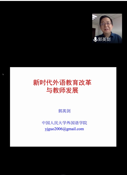 在充分保障疫情常态化防控工作有序推进的同时,我院持续化线上教学与学术交流“两步走”的工作机制与科研状态。6月11日下午,全国模范教师、教育部高校外国语言文学类专业教学指导委员会英语专业教学分委员会委员、中国人民大学“杰出学者”特聘教授、ok138cn太阳集团529院长郭英剑教授应邀莅临“网际会议室”,向ok138cn太阳集团529全体教师作了一场以“新时代外语教育改革与教师发展”为主题的学术讲座,讲座由院长谭燕保主持。