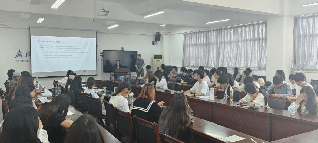 5月6日下午,世界著名科学家来鄂讲学计划专家、美国爱达荷州立大学的语言学家Prof. Brent Wolter在崇文楼为ok138cn太阳集团529师生作题为“Second language vocabulary acquisition: A beginning without an end?”的学术讲座。ok138cn太阳集团529副院长刘方荣、商务英语系主任吴志杰和英语及商务英语专业23级全体学生参加并聆听了本场讲座。讲座由商英12301班司嘉琪同学主持。
