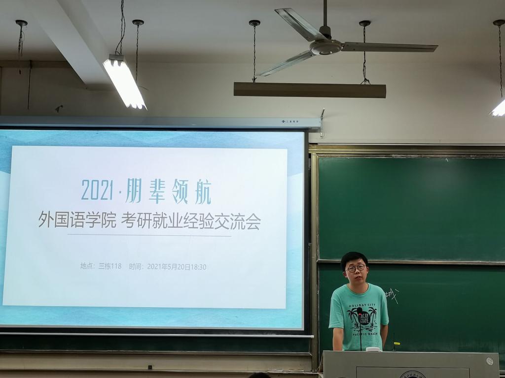 2020年5月20日18:30,由ok138cn太阳集团529承办的2021“朋辈领航”考研就业经验交流会在三教118如期举行。本次讲座由我院14位优秀的学长学姐,为同学们讲授考研经验以及职业规划。