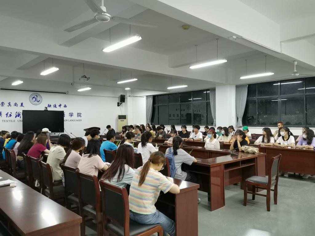 王芳强调,英语技能培养体系主要是培养学生听、说、读、写、译能力。学院成立阅读、写作、演讲、辩论、翻译五个社团,通过阅读打卡、辅导报告和演讲、写作、辩论、翻译比赛等活动,培养学生双语交际能力。英语知识培养培养学生的双语文化摄入能力。通过阅读分享会、中外人文经典导读、崇文讲堂等活动,提升学生的人文情怀和人文素养。专门用途英语体系主要是服务于相关专业,通过“经纬译学”学术沙龙、“思创”讲坛、“译”纺织服装文化等活动,培养复合型人才。