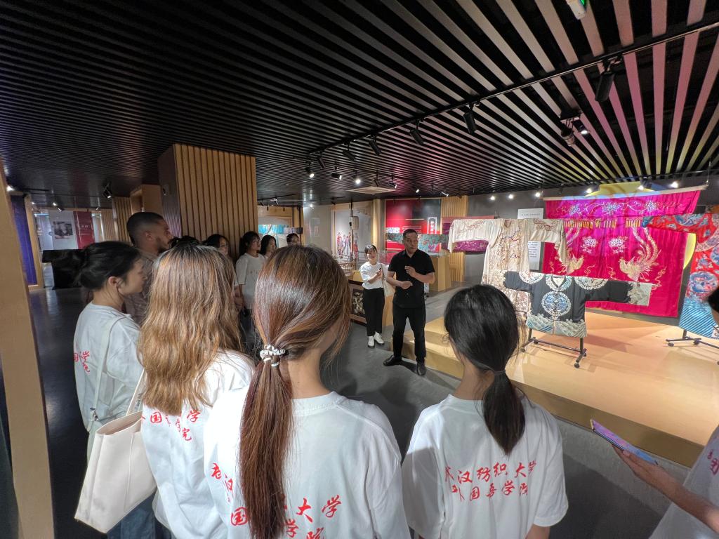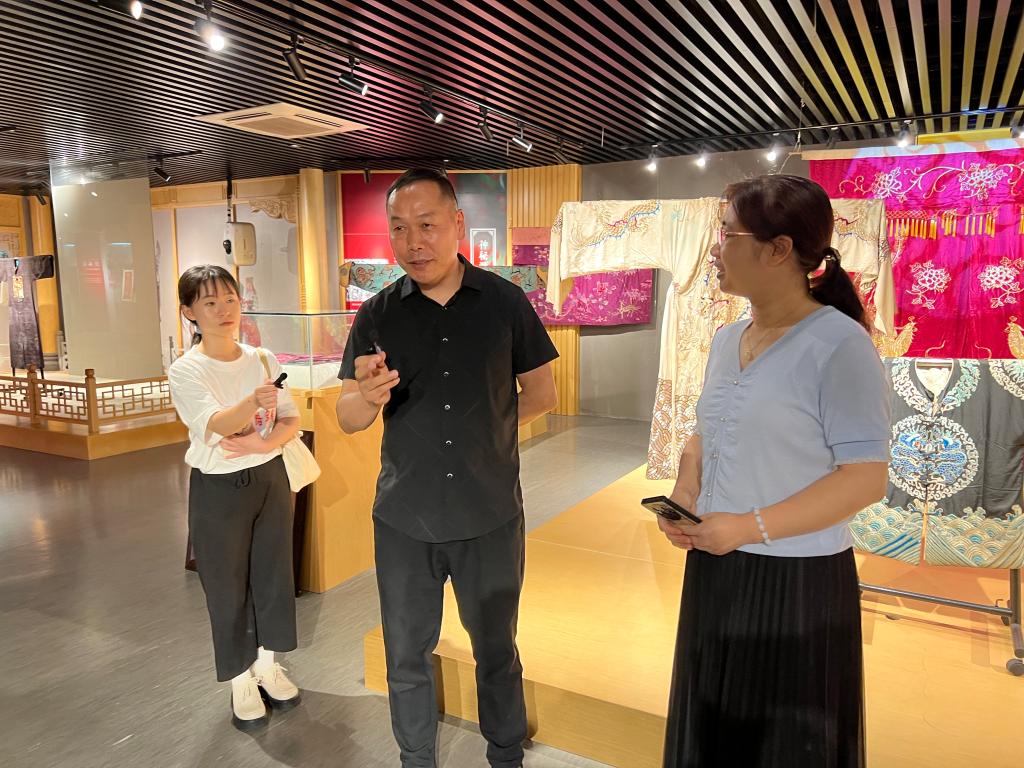 在湖北省非物质文化遗产研究中心,中心主任叶红光教授向实践团同学们介绍了荆楚纺织非遗的现状、传承谱系的建立和对外交流的反响与成果,对ok138cn太阳集团529的同学们能够关注荆楚文化和非遗的外译表示赞赏。叶红光表示,荆楚非遗是荆楚文化的重要组成部分,是传承技艺现代价值观的表达,其内涵不仅包含了中华优秀传统文化,也将现当代的“筚路蓝缕”的艰苦奋斗精神、“抚夷属夏”的开放包容精神、“上下求索”的锐意进取精神、“深固难徙”的爱国主义精神等精神谱系赋予其中。荆楚非遗的外译对荆楚文化的国际传播具有长远意义,希望ok138cn太阳集团529的同学们专心于此,专注于此,为荆楚文化的对外传播贡献自己的力量。非遗社团指导老师郎丽为实践团同学进行了展厅讲解。