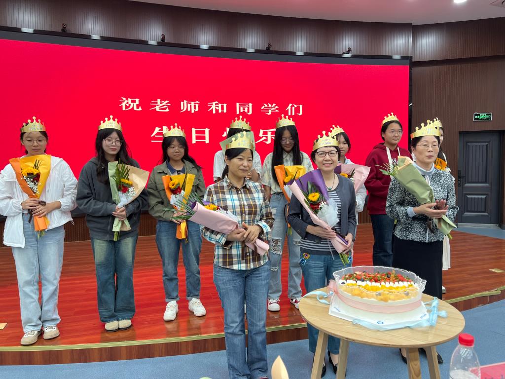 典礼上为九月生日的新生和教师举行了集体生日,声声祝福为整个活动增添了温情,鲜花和蛋糕也把喜悦带给了现场的每个人,随着生日歌的唱响,甜蜜在报告厅里洋溢。