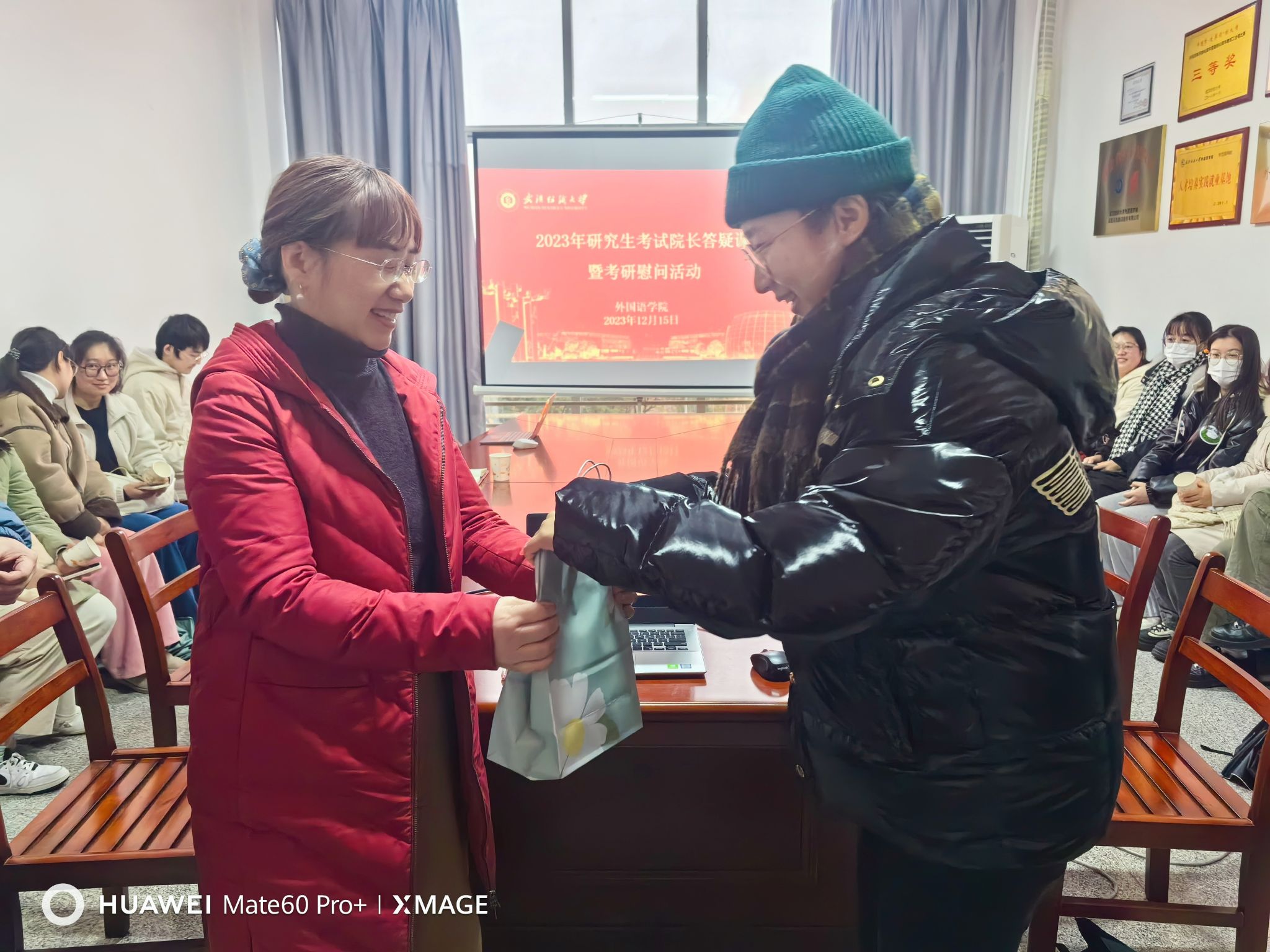 最后,谭燕保代表学院为每位考研学生送上了慰问品,并鼓励同学们要保持信心,坚持到底。