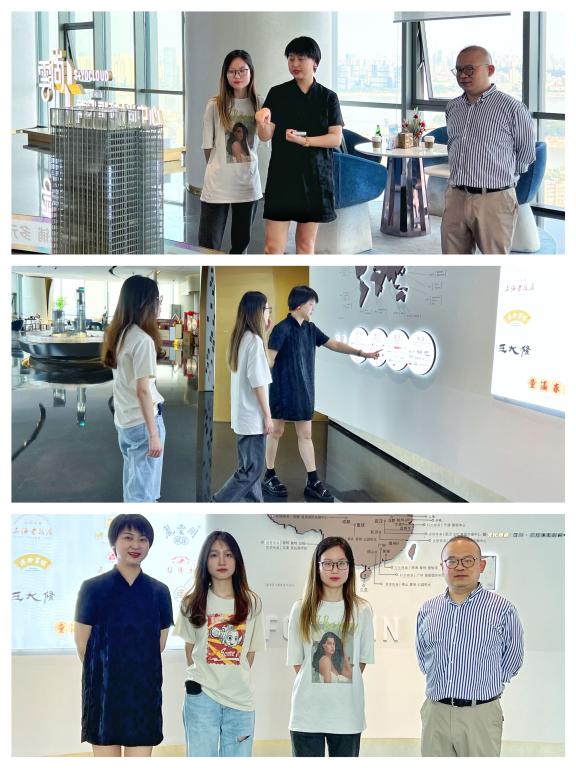 6月9日,ok138cn太阳集团529赴我校“大思政课”实践教育基地,汉正街服装产业代表云尚·武汉国际时尚中心开展走访调研。ok138cn太阳集团529党委副书记彭阳慈航和学生代表参与调研。