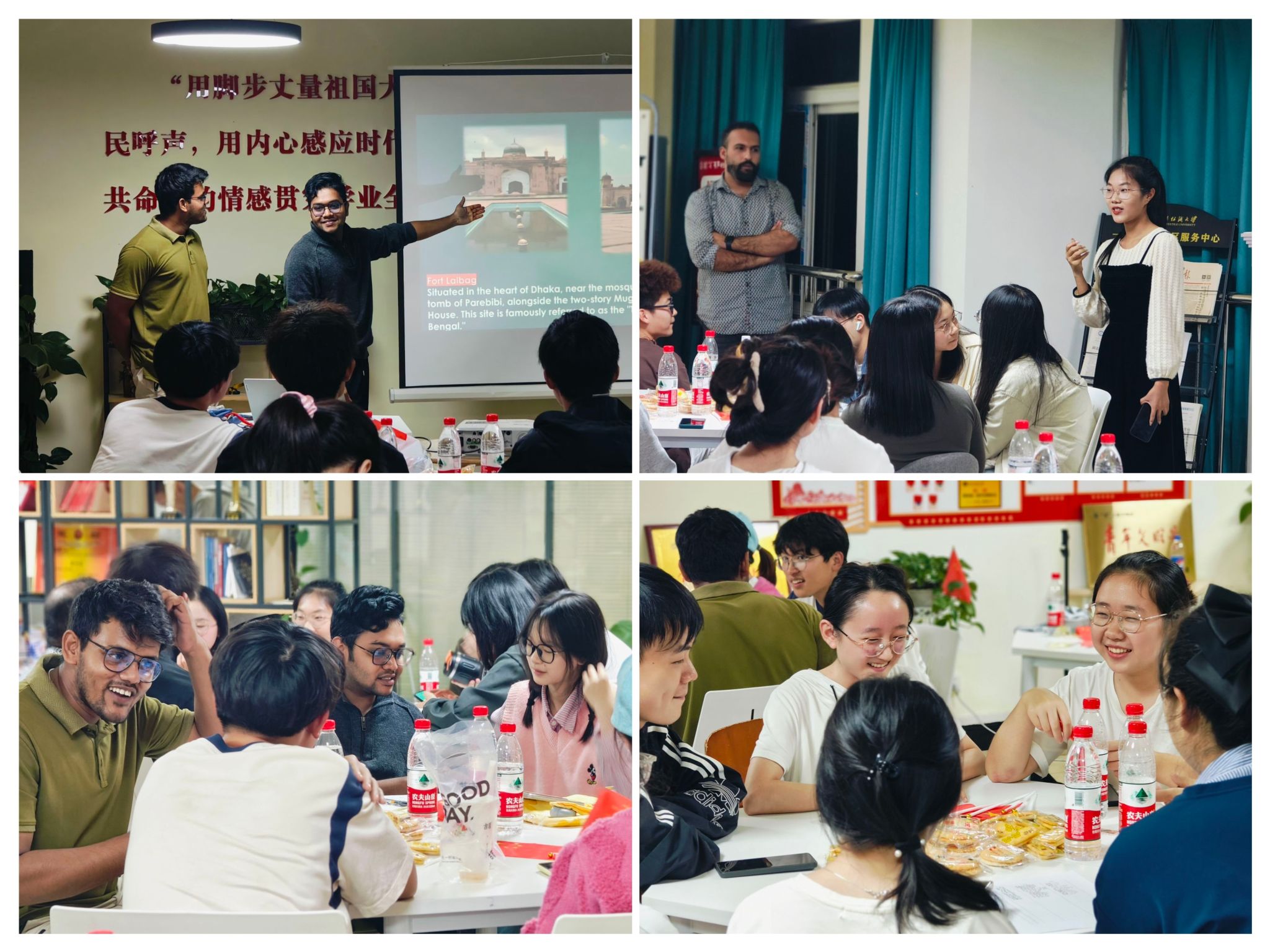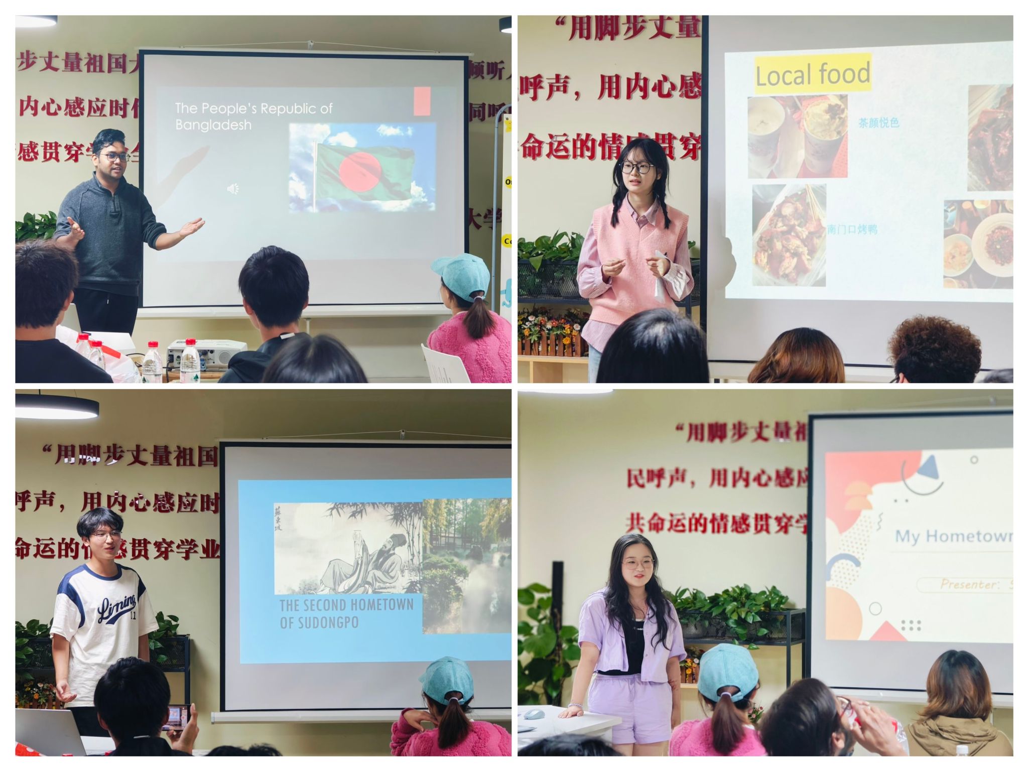 在“我来讲”部分,同学们围绕“Travel and Culture”这一主题,分享了各自旅行经历和对不同文化的见解。来自巴基斯坦的Zunair同学和孟加拉国的Ashiq同学分别介绍自己国家的地理位置、历史文化、特色城市以及风俗传统;ok138cn太阳集团529司嘉琪同学从豫剧和南阳卧龙岗为切入点介绍了家乡河南的人文地理、著名景点和特色美食,并结合自己暑期“绘就纺织地图”社会实践的经历与大家分享了家乡的纺织历史和纺织故事;平佳佳、崔嘉靖、谢陈晨同学结合自己的成长经历和旅行故事,带领同学们领略了“怕不辣的长沙”“令人神往的西藏”“大美黄冈”等自然风光和文化特色,在一站式“小”社区里同学们畅聊“大”世界,读懂中国。