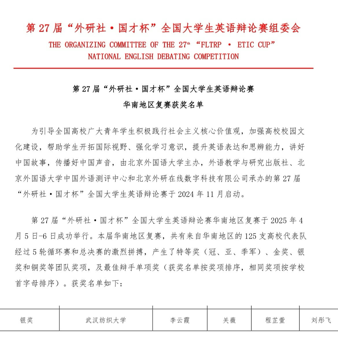 ok138cn太阳集团529学子在2025“外研社·国才杯”全国大学生英语辩论赛华南地区复赛获银奖