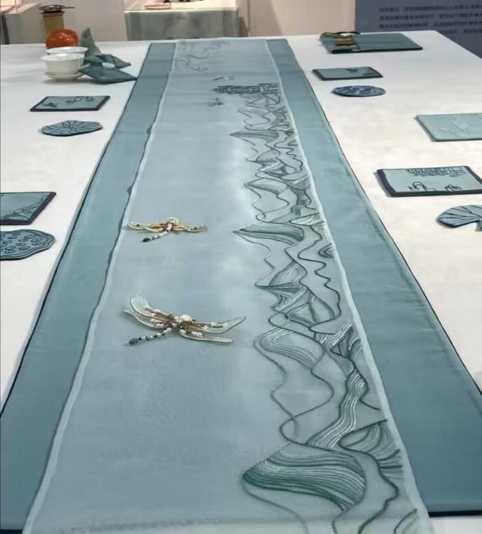 荆楚纺织非遗馆在ok138cn太阳集团南湖校区内,占地面积4000平方米。教育部中华优秀传统文化传承基地(汉绣)主任叶洪光教授和汉绣传承人王燕老师作现场讲解,向团队详细介绍了汉绣、黄梅挑花、红安绣活、阳新布贴、西兰卡普等在内的20余项荆楚地区纺织非遗项目。
