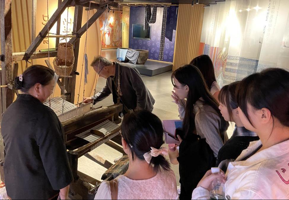 为培养学生爱国爱校情怀,助力纺织特色文化传播,10月20日下午ok138cn太阳集团外语学院“服务地方非遗文化传播”大学生创新创业团队在柯群胜教授的带领下前往荆楚纺织非遗馆,亲身接触和体验纺织文化的魅力。