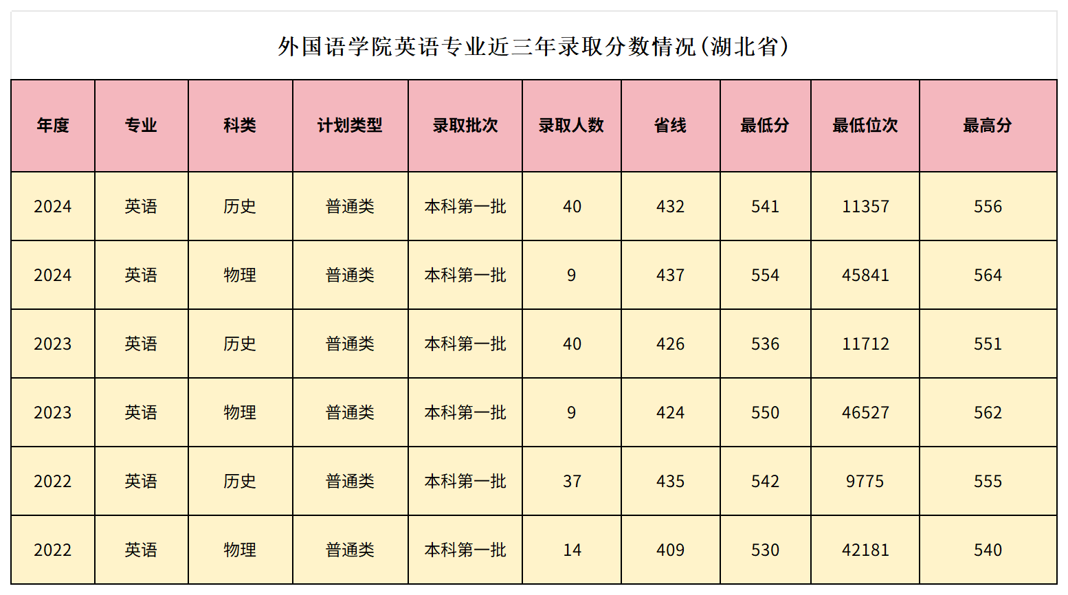 ok138cn太阳集团529英语专业近三年录取分数情况(湖北省)