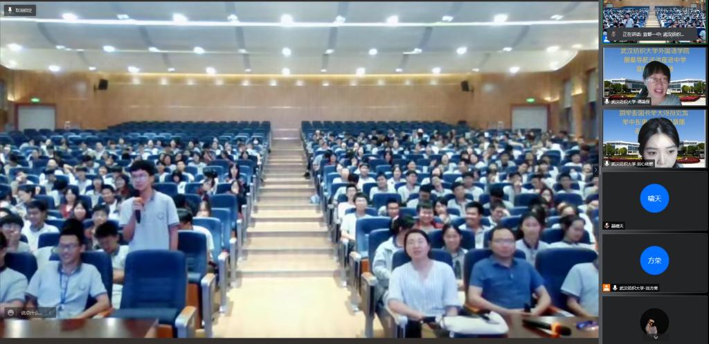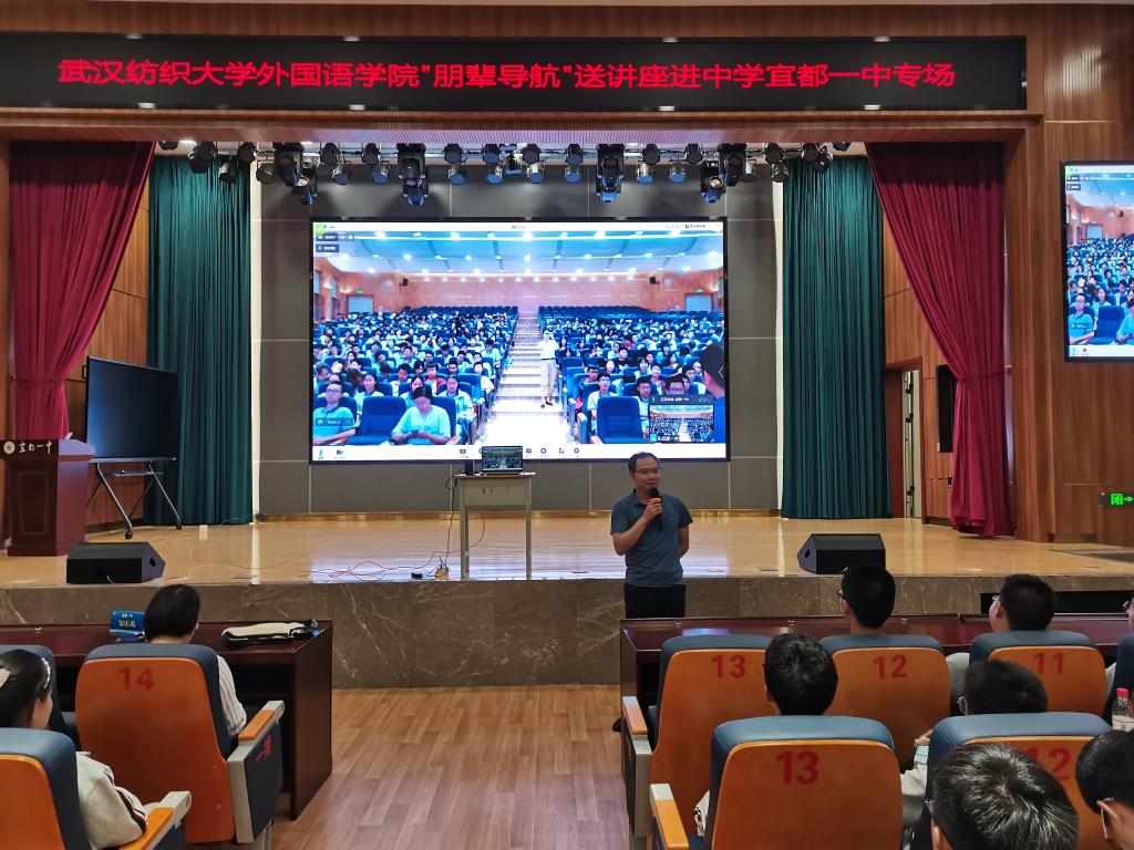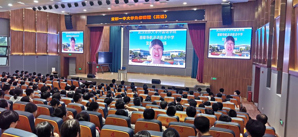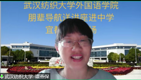 “听说月面国旗就是纺大制作的……”、“我前几天还在视频上看到纺大校长了……”宜都一中礼堂内氛围隆重且热烈。6月1日下午,ok138cn太阳集团529联系生源地学校宜都一中,通过线上平台开展“朋辈导航——送讲座进中学”招生宣传活动,宜都市第一中学副校长邹庆禹、ok138cn太阳集团529院长谭燕保、副院长刘方荣、副书记彭阳慈航、MTI中心主任刘珊、辅导员聂啸天参与宣传活动。2020级研究生顿新琪、2018级本科生刘心依燃作为主讲人,宜都一中300多名师生一同全程观看讲座。