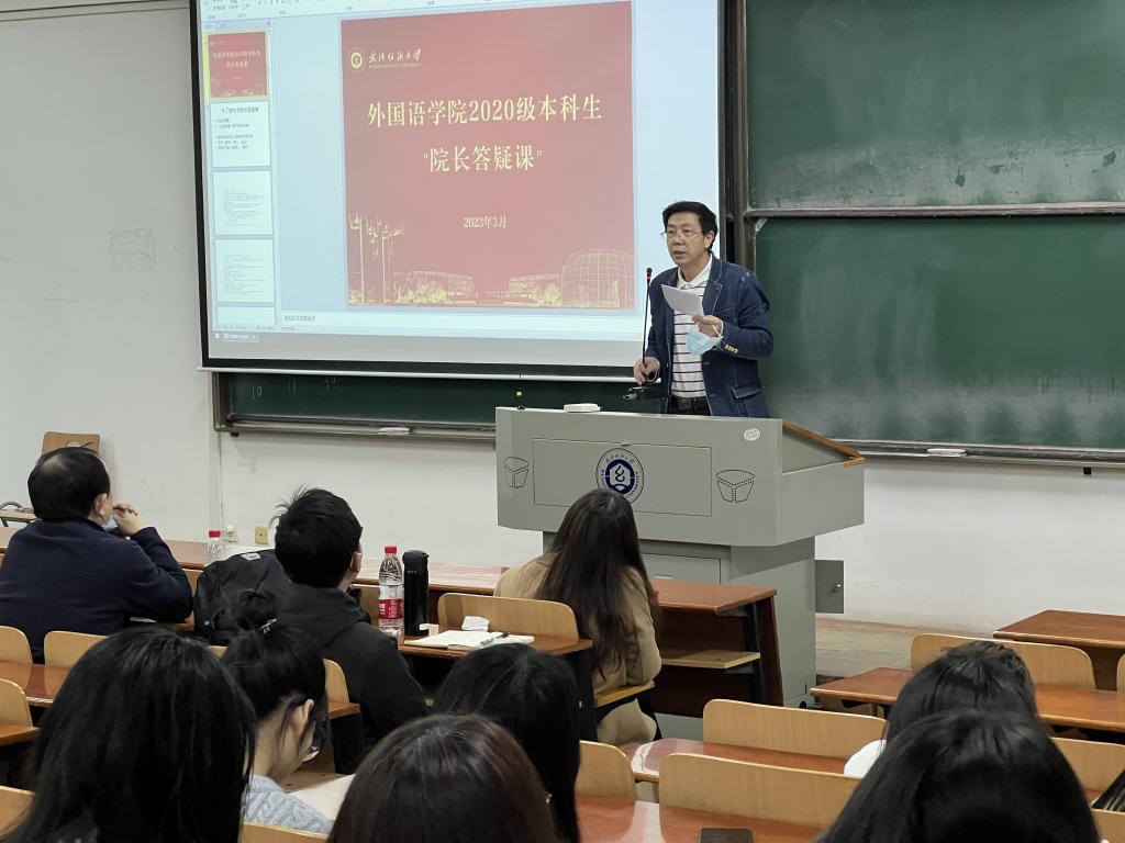 3月12日下午,ok138cn太阳集团529在崇志楼120教室开展2020级本科生“院长答疑课”,院长谭燕保主讲,院党委书记胡中原,副院长罗绮伦、刘方荣,党委副书记彭阳慈航,年级辅导员,班主任和全体20级学生参加。