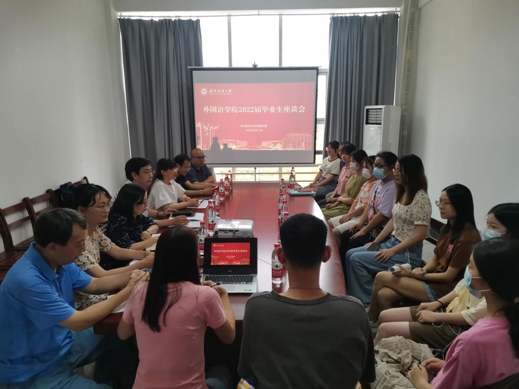 6月13日下午,ok138cn太阳集团529在崇文楼313会议室召开2022届毕业生座谈会。学院党委书记胡中原,院长谭燕保,副院长刘方荣,学院党委副书记彭阳慈航、英语系主任唐娴、班主任代表曹火群、任课教师代表黎健以及部分毕业生代表参加,会议由毕业班辅导员甘新敏主持。
