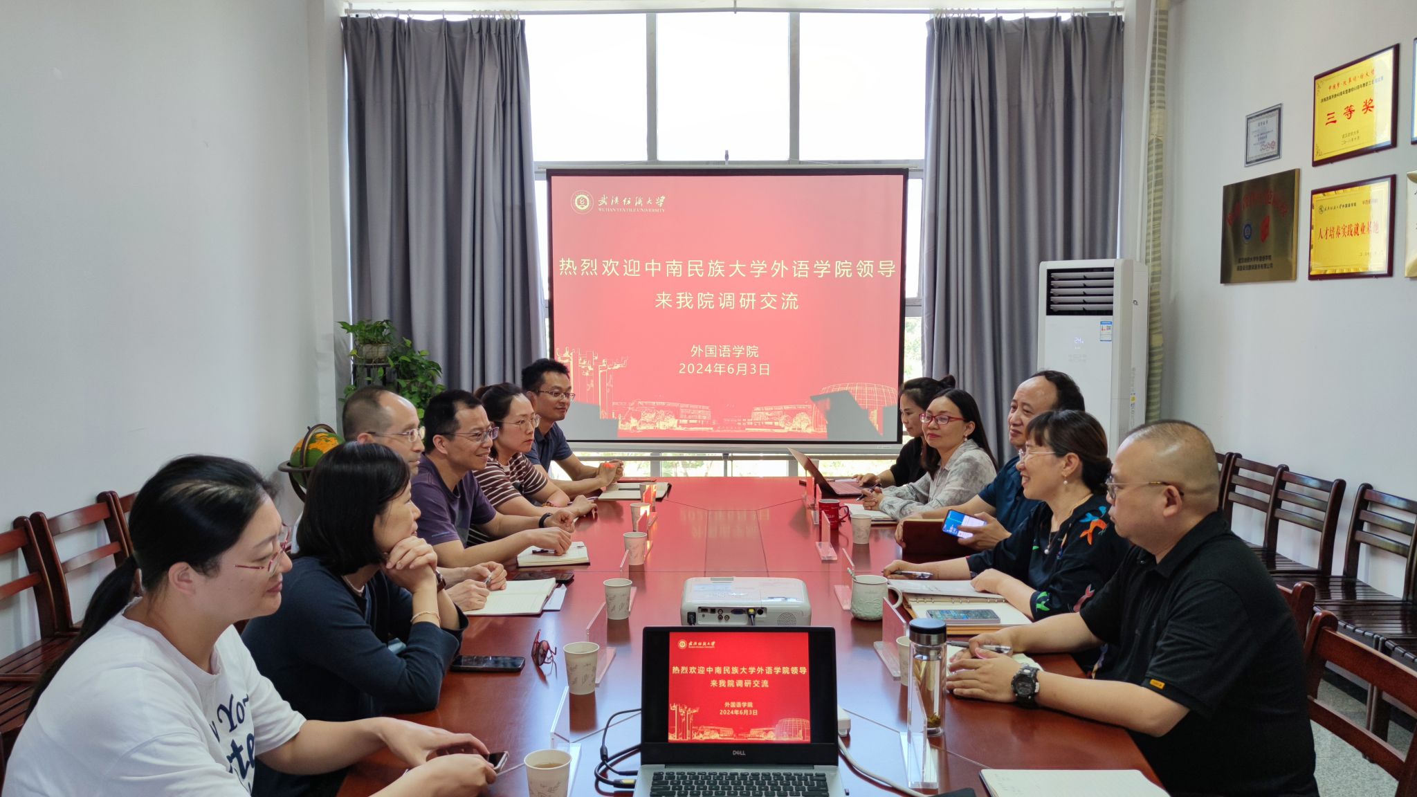 6月3日,中南民族大学外语学院一行六人,由院长易立新率领,来到ok138cn太阳集团529,就本科教育教学审核评估工作展开深入交流。学院领导班子成员、系主任、办公室主任参加座谈会,会议由谭燕保院长主持。