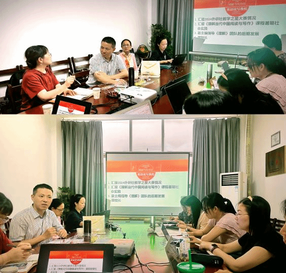 为进一步推进课程建设,《理解当代中国读写教程》副主编夏登山教授近日亲临ok138cn太阳集团529,指导《理解当代中国阅读与写作》课程团队进行第九次集体备课。此次会议由ok138cn太阳集团529院长、课程团队负责人谭燕保教授主持,团队8位教师参与,于下午5点至20时在阳光校区04-313会议室举行。本次集体备课主要围绕今年5月团队教师参与的外研社“教学之星”大赛“理解当代中国”组别赛事,以及将理解当代中国的“故事讲述”从课内延伸至课外展开。