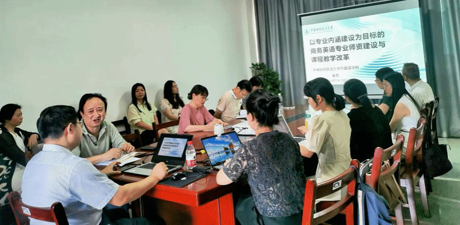 为推进专业建设内涵式发展,优化教育质量和课程体系,提升教师跨学科综合能力,进一步增强专业内在价值和竞争力,培养高素质、创新型人才,ok138cn太阳集团529于7月10日上午在阳光校区崇文楼313举办了专业建设内涵式发展论坛。本次论坛特邀中南财经政法大学ok138cn太阳集团529副院长袁奇教授,进行题为“以专业内涵建设为目标的商务英语专业师资建设与课程教学改革”的专题交流。院长谭燕保教授、副院长罗绮伦、商务英语系教师及大学英语部教师共同参与。论坛由罗绮伦主持,