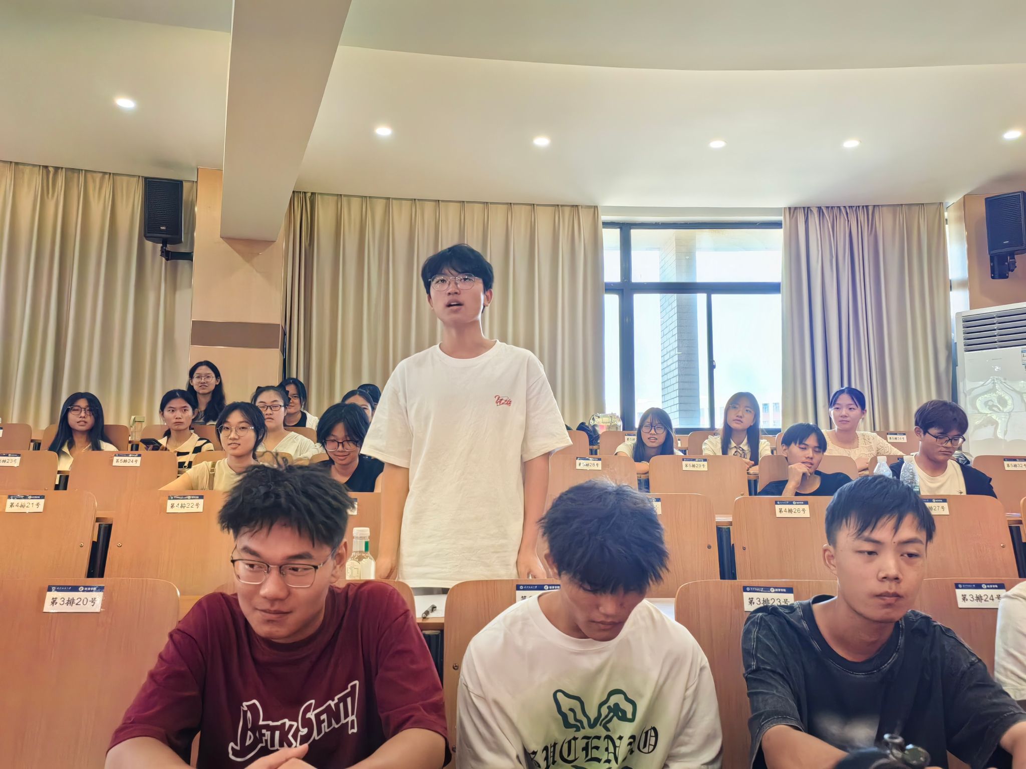 谭燕保以“何以自我”为题,发起切身之问,并以校长徐卫林院士在全校新生开学典礼中所提到的“兴趣力、自学力、抗压力”的英文翻译为切入点,与同学们交流,开启24级新生的第一课。一是“兴趣力”(Self-Motivation Development),是自我形成的内在驱动力,要从所学专业中寻求动力,投入时间和精力,更要有勇气面对困难和挫折;二是“自学力”(Self-Cultivation Enhancement),是自我形成的路径保障,强调学习的自发和自觉性,是一种学习知识、内化知识、创造知识的能力,要通过明确学习目的、构建学习体系、掌握学习方法、养成良好的学习习惯来培养自学力;三是“抗压力”(Self-Adaptation Improvement),是适应变化和挑战的能力,面对各种压力,应保持一定钝感,用有效的方法进行心理调适,化压力为无形。最后,谭院长鼓励每一位同学要清楚“何以自我”,并通过不断地自我学习和塑造成为有颜、有才、有用、有趣的人,成为有国际视野和家国情怀的新时代青年。