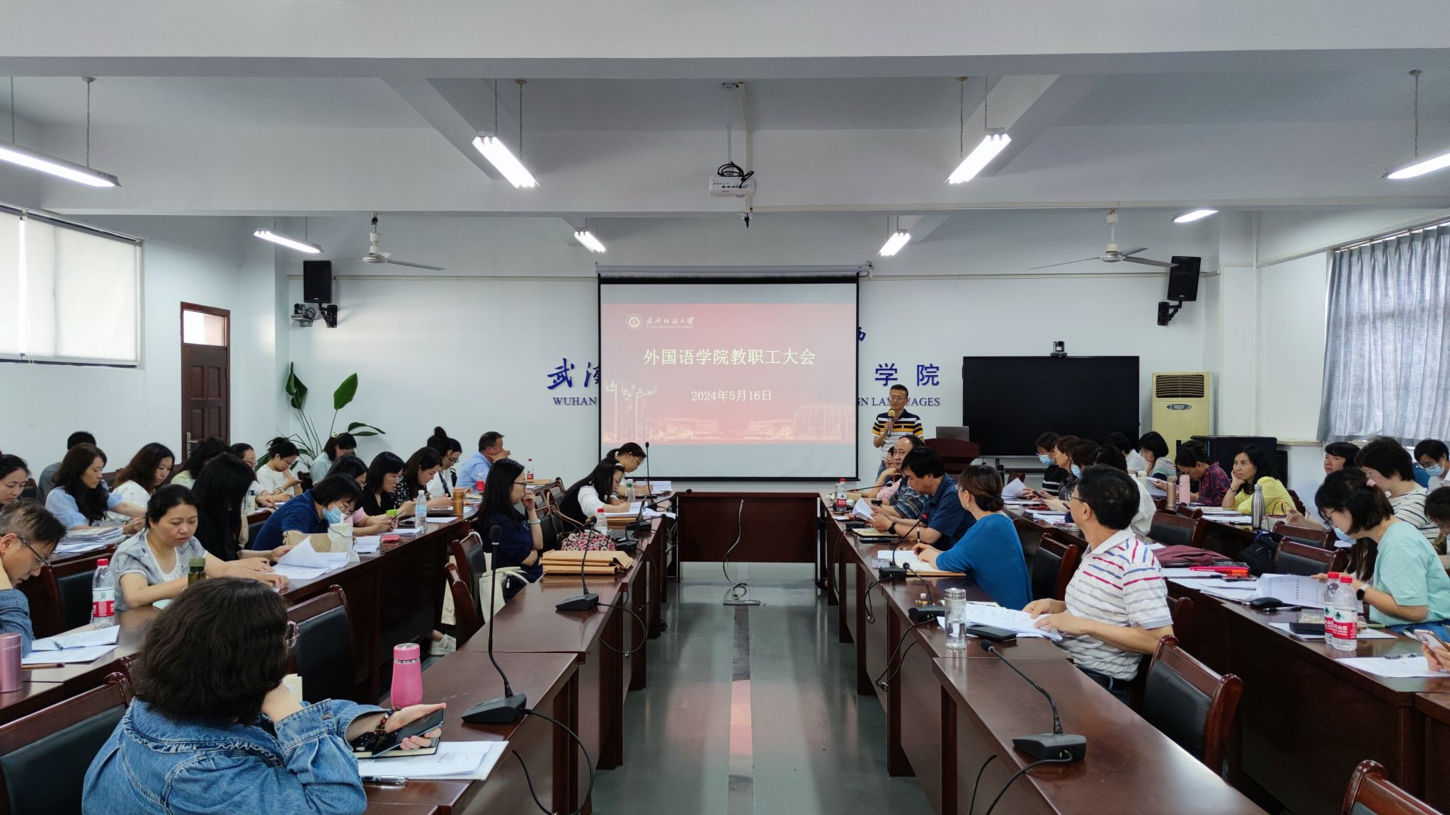 5月16日下午,ok138cn太阳集团529在04-303会议室召开全体教职工大会,开展政治理论集中学习,学院党委书记胡中原主持会议,全体党员教师、教职工代表参加会议。