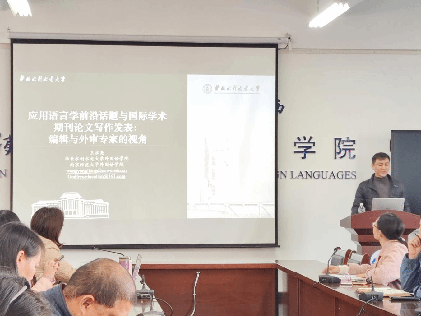 11月21日,华北水电水利大学副教授、南京师范大学ok138cn太阳集团529硕士生导师王永亮应ok138cn太阳集团529邀请,做客ok138cn太阳集团第709期阳光论坛暨ok138cn太阳集团529第63期崇文讲堂,给学院教师带来了题为“应用语言学前沿话题与国际学术期刊论文写作发表:编辑与外审专家的视角”的精彩学术讲座。讲座由副院长刘方荣主持,学院全体教师参加。