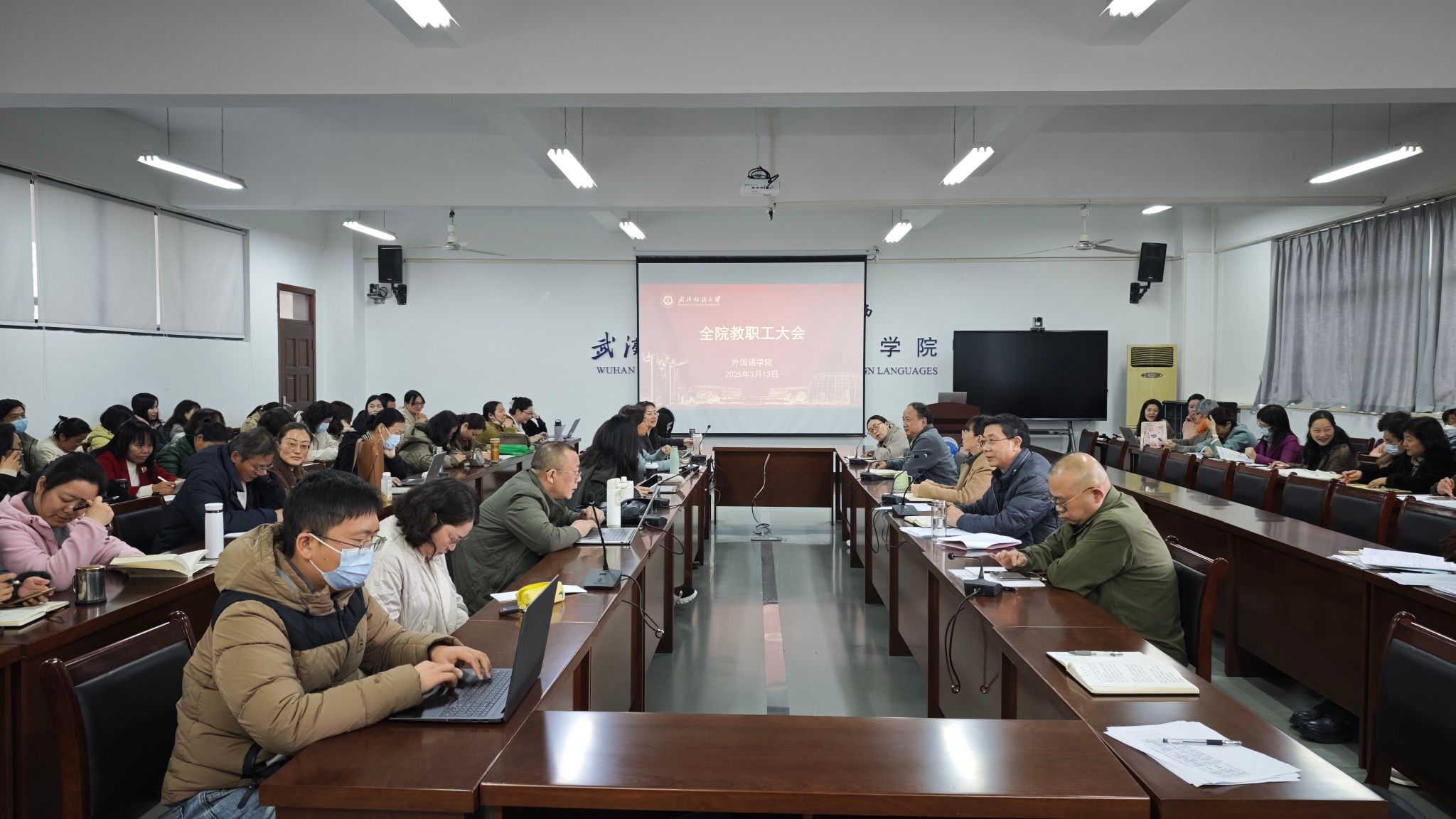 3月13日下午,ok138cn太阳集团529在04-303会议室召开全体教职工大会,开展政治理论集中学习,学院党委书记胡中原主持会议,全体教职工参加会议。