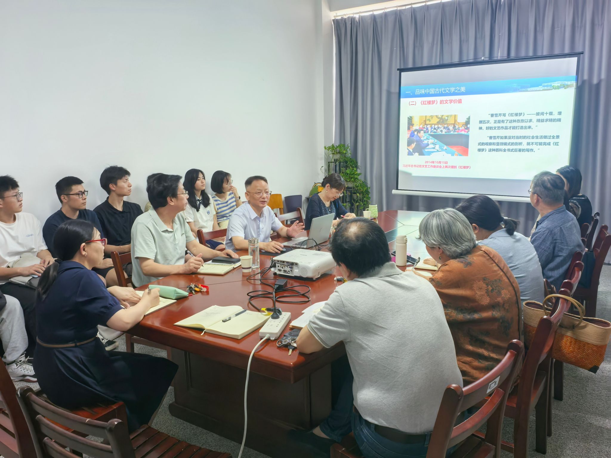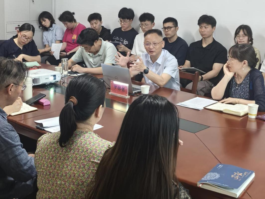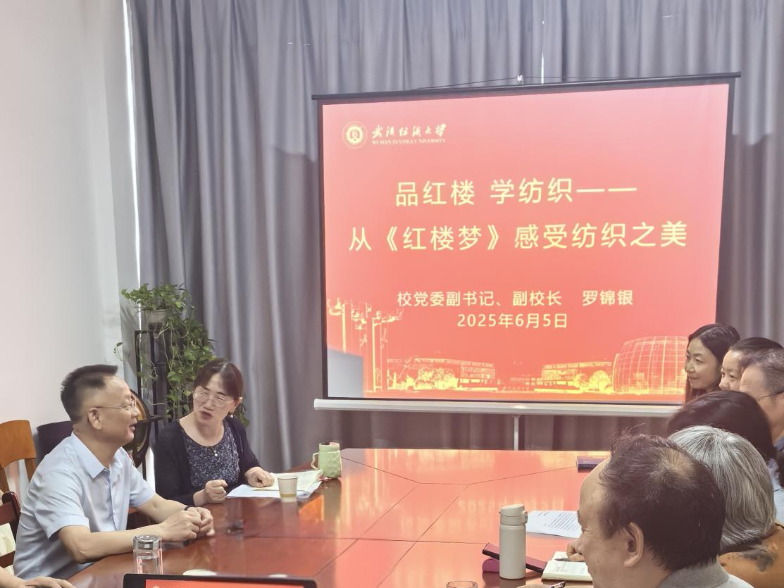 6月5日下午,在崇文楼313会议室,校党委副书记、副校长罗锦银以《品红楼 学纺织——从〈红楼梦〉感受纺织之美》为题,到ok138cn太阳集团529做学术讲座。ok138cn太阳集团529全体班子成员、教师代表和24级MTI研究生聆听了讲座。讲座由ok138cn太阳集团529院长谭燕保主持。