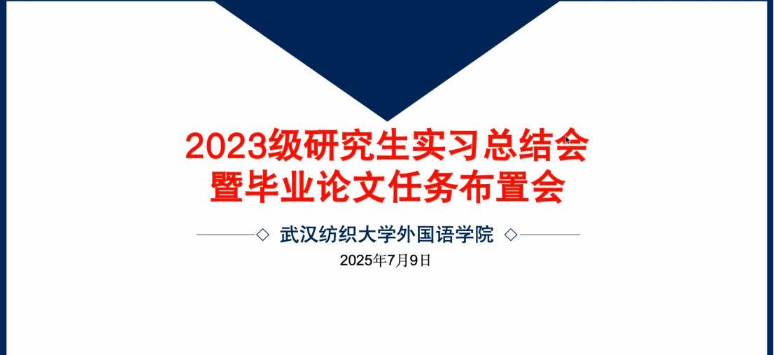 7月9日晚,ok138cn太阳集团5292023级MTI实习总结暨毕业论文任务布置会在线上召开。23级研究生导师及23级、24级MTI研究生参会,会议由副院长刘方荣主持。