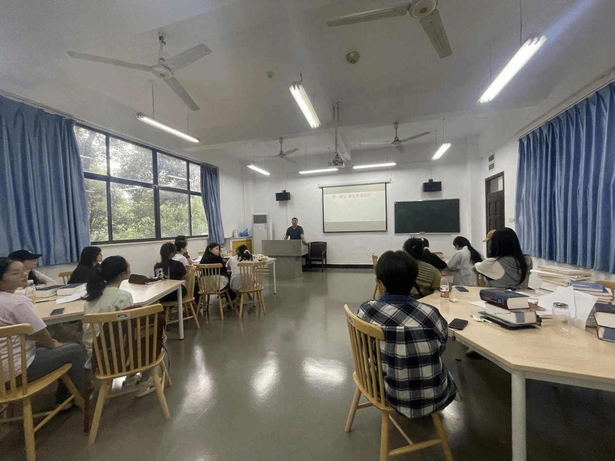 9月19日下午,辅导员聂啸天在崇文楼308对学生进行了日常安全和管理制度教育。聂老师不仅强调了宿舍用电、外出防盗等安全要点,还详细解读了研究生考勤、请假及学术规范等管理制度,帮助学生快速明确在校行为准则。