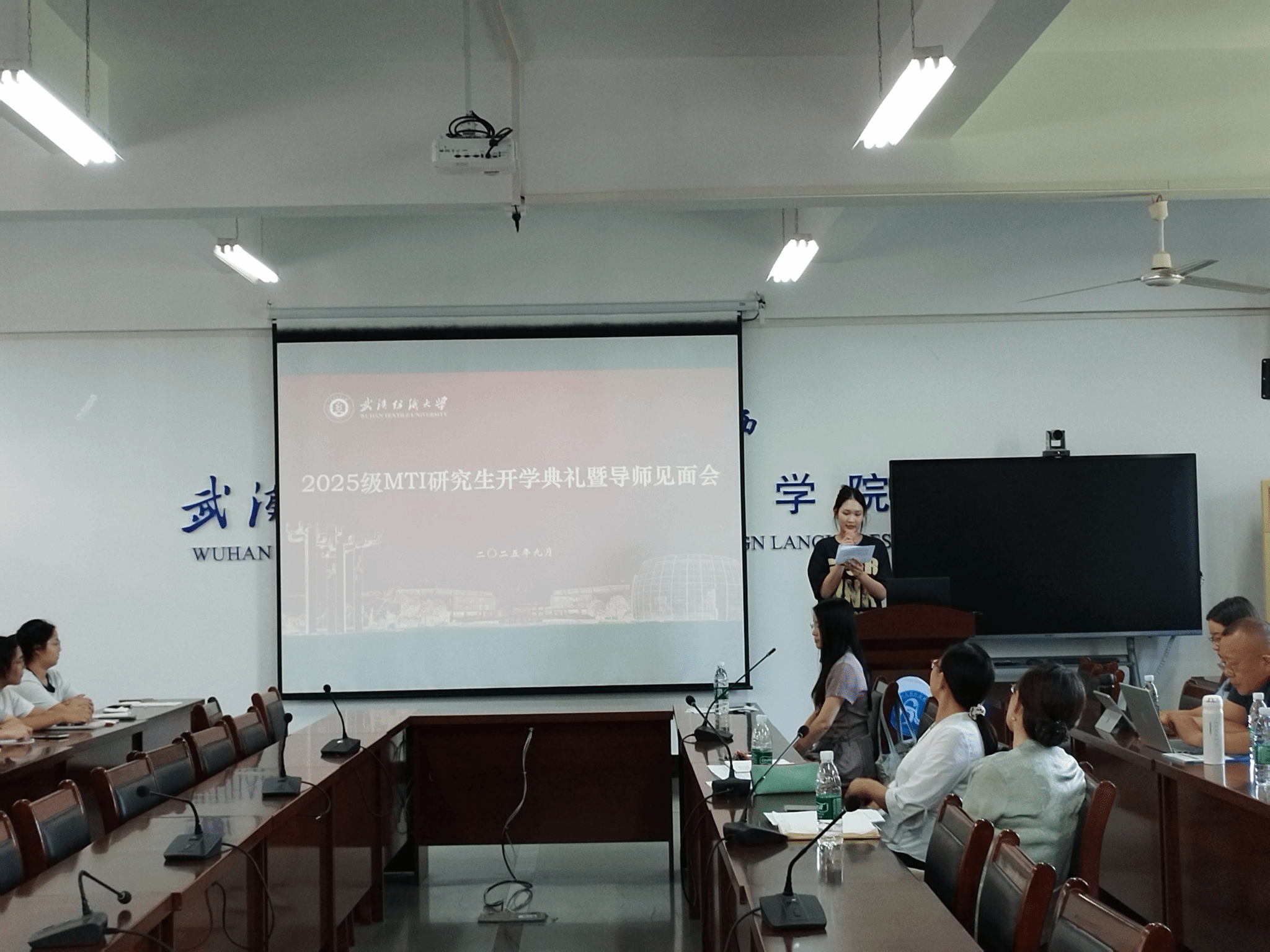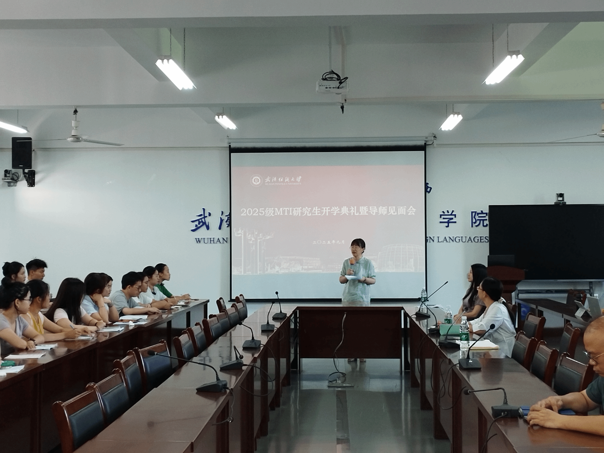 9月17日下午,2025级MTI研究生开学典礼暨导师见面会在崇文楼303会议室举行。ok138cn太阳集团529院长谭燕保、副院长刘方荣、副书记彭阳慈航、MTI教育中心管理团队、全体硕士生导师、2025级MTI研究生及2024级研究生代表参加典礼。会议由MTI教育中心主任刘珊主持。