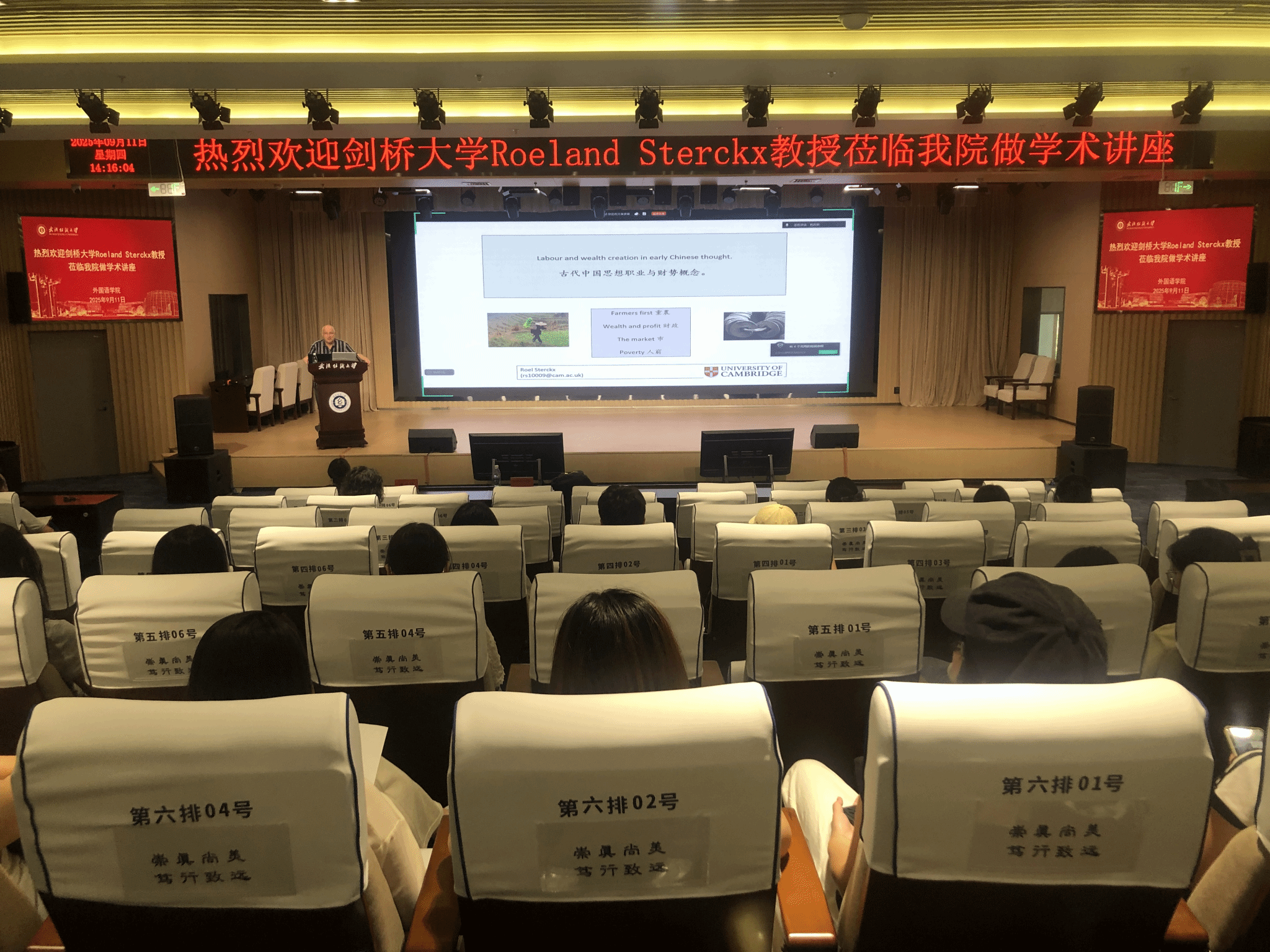 9月11日下午,世界著名科学家来鄂讲学计划专家、著名汉学家英国剑桥大学Roeland Sterckx教授在建全会堂稳健厅作了题为“Labour and wealth in early Chinese thought”(“古代中国思想职业与财势概念”)的学术讲座。讲座由院长谭燕保教授主持,ok138cn太阳集团529部分教师及英语专业和商务英语专业本科生参加。