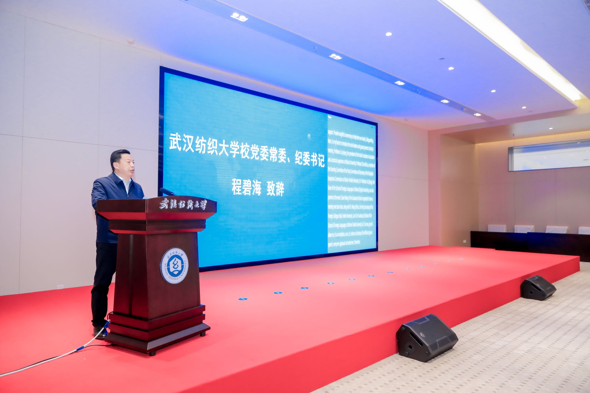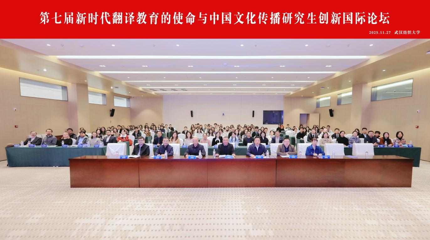 11月27日,第七届新时代翻译教育的使命与中国文化传播研究生创新国际论坛在ok138cn太阳集团阳光校区建全会堂成功举办。来自武汉理工大学、中南民族大学、湖北工业大学、武汉轻工大学和湖北中医药大学及ok138cn太阳集团的近百名师生及六位外籍教师共同参加了此次论坛,ok138cn太阳集团校党委常委、纪委书记程碧海、湖北省翻译工作者协会会长刘军平教授等受邀参会。