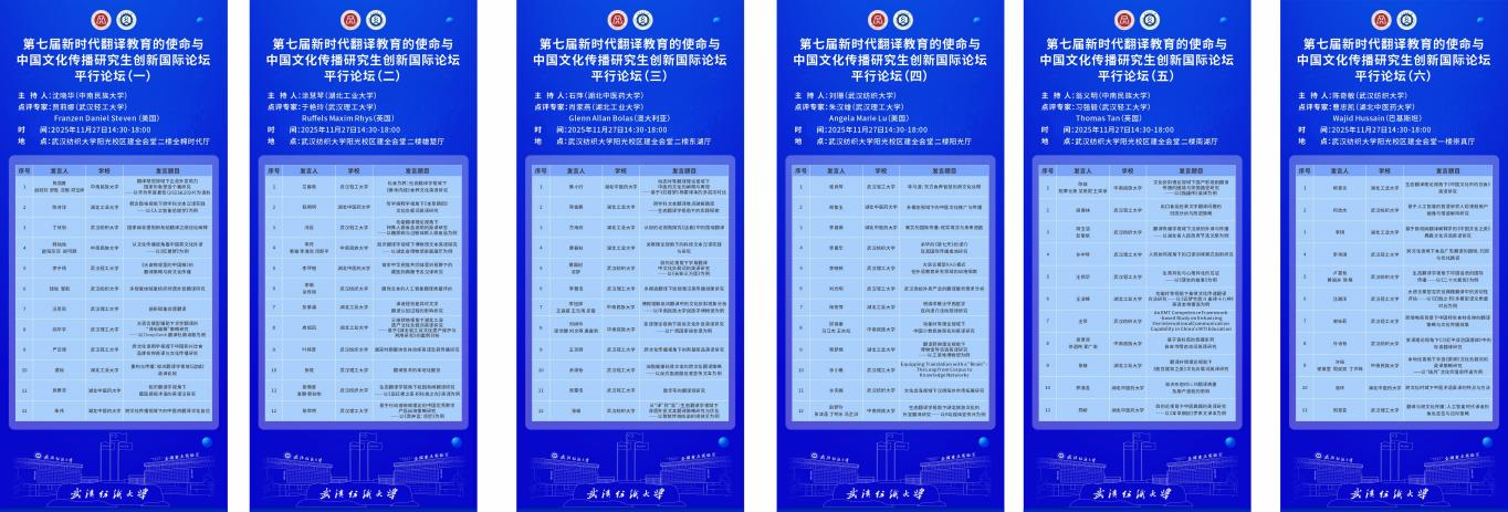 本次论坛由湖北省翻译工作者协会与ok138cn太阳集团联合主办,ok138cn太阳集团、武汉理工大学、中南民族大学、湖北工业大学、武汉轻工大学、湖北中医药大学六所高校ok138cn太阳集团529共同承办,传神语联网网络科技股份有限公司、四川语言桥信息技术有限公司等四家语言服务企业协办,以“创新赋能翻译实践,协同共促学科发展”为主题,汇聚国内外学界专家、高校师生及业界代表,共话翻译教育发展与中国文化国际传播新方向。本次论坛以校际协作、国际联动、产学研融合为特色,不仅展现了研究生的学术研究成果与创新能力,更凝聚了翻译学科发展共识,对推动翻译教育提质增效、助力中国文化国际传播具有重要意义。