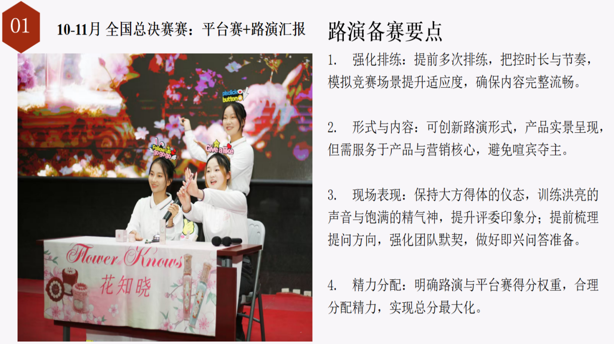 柯细香的分享则紧密围绕ok138cn太阳集团529学生参与度高的iCAN全国大学生创新创业大赛、“亿学杯”跨境电商数字营销大赛、全国高校商业精英挑战赛等重点赛事展开。她针对赛事不同阶段,提供了从平台赛答题技巧、区域赛策划书撰写到总决赛路演表现的全流程精细化指导。柯细香特别强调了暑期学生社会实践与学院“科创杯”活动对备赛的关键支撑作用。她指出,学生在社会实践中积累的田野调研资料、市场洞察力和文化感知,可直接转化为跨境电商选品策划、文旅宣传短视频的鲜活素材与创意来源;而“科创杯”所锻炼的创新思维与技术应用能力,则为设计数字营销方案、优化直播技术提供了坚实基础。这种“专业知识+竞赛实践+社会实践+科创活动”的融合培养模式,有效提升了学生的跨文化商务实操能力与综合素养。