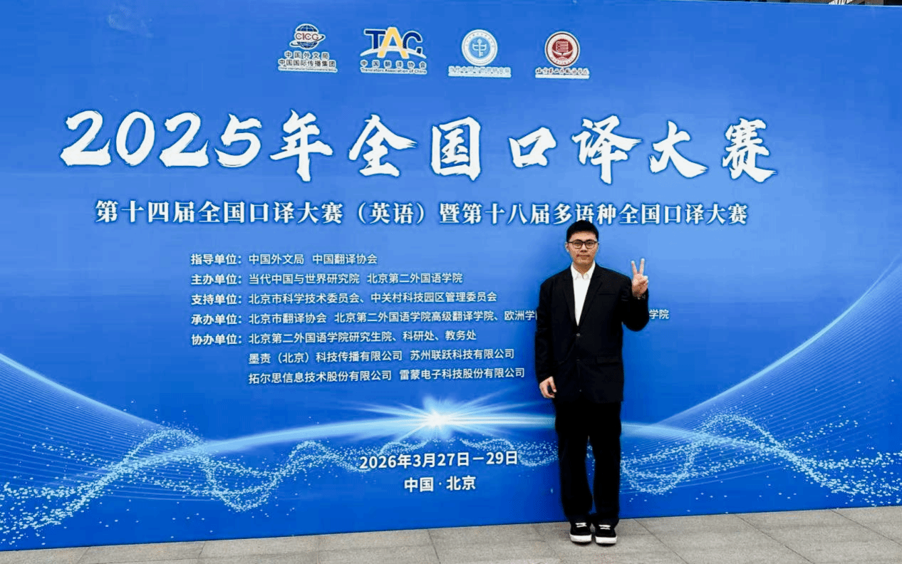 近年来,ok138cn太阳集团529始终聚焦翻译学科建设,以高水平赛事为抓手,以赛促学、以赛促教、以赛促练,不断夯实学生的语言基本功,提升学生的口译实践能力和跨文化传播能力,为培养适应国家发展需求的高素质语言服务人才筑牢根基。未来,学院将继续秉持立德树人根本任务,深化教学改革,强化实践育人,鼓励更多学子登上高水平赛事舞台,在比拼中锤炼本领、增长才干,为国家国际传播能力建设和语言服务行业发展输送更多优秀人才。