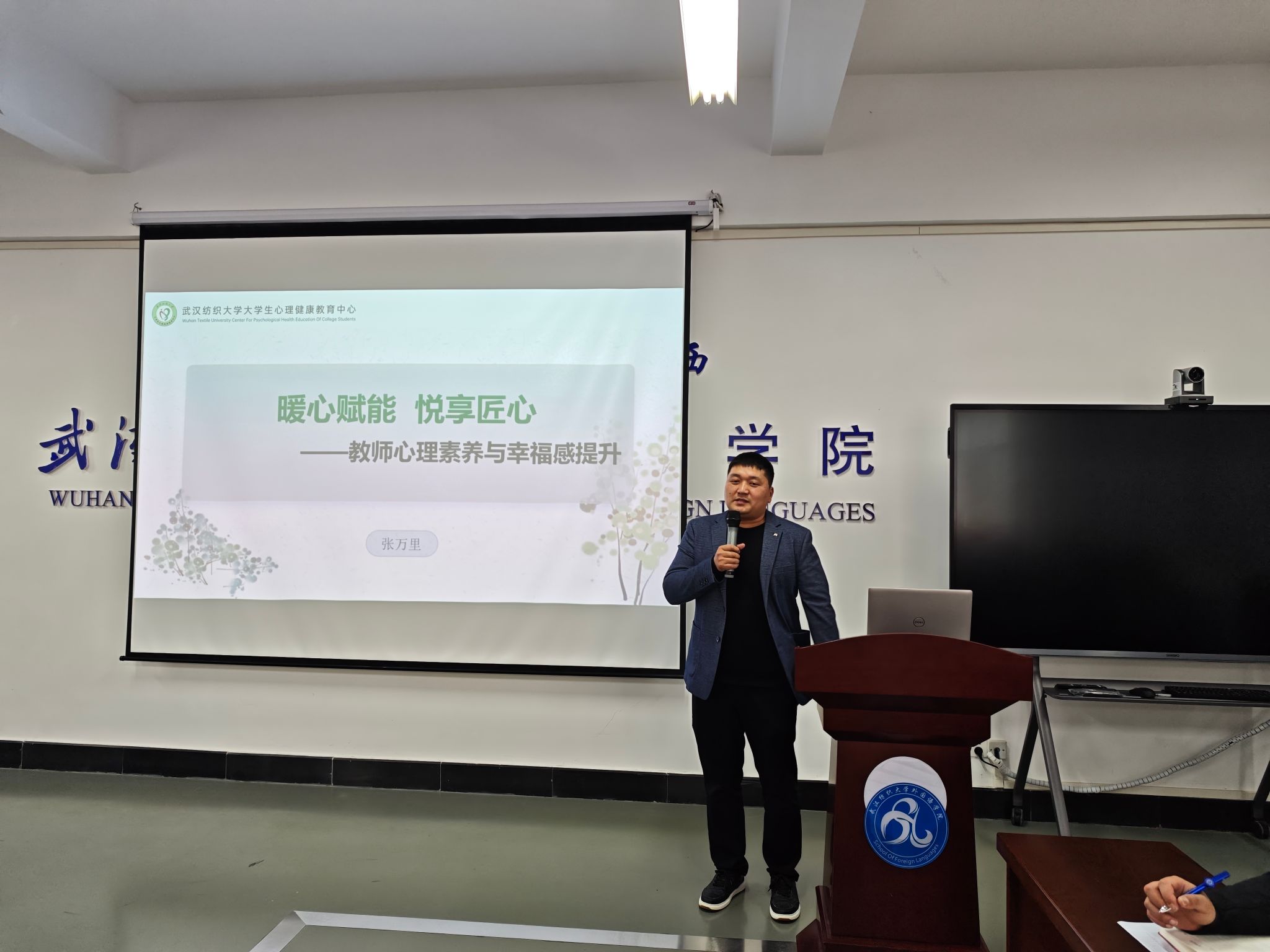 本次讲座围绕教师心理素养与幸福感提升核心主题,从四大维度展开系统且务实的分享:第一是教师心理状态解析,张万里老师结合高校教师日常教学、科研与育人工作的多重压力场景,梳理了当前教师群体常见的情绪困扰来源,引导老师们科学觉察自身心理状态,正视压力的合理性,避免对负面情绪的过度苛责;第二是心理赋能方法指导,从职业价值认同、个人优势发掘、心理韧性构建三个层面,传授了可落地的自我赋能实用技巧,帮助老师们在繁杂的工作中获得持续的内在动力;第三是情绪管理策略实践,结合具体工作场景案例讲解了情绪识别、情绪接纳与情绪调节的三步法;第四是幸福感提升路径分享,引导老师们平衡职业发展与个人生活,从微小的积极行为构建、社会支持系统搭建等方面,构建长期的幸福感知能力,实现职业成长与个人生活的双向促进。
