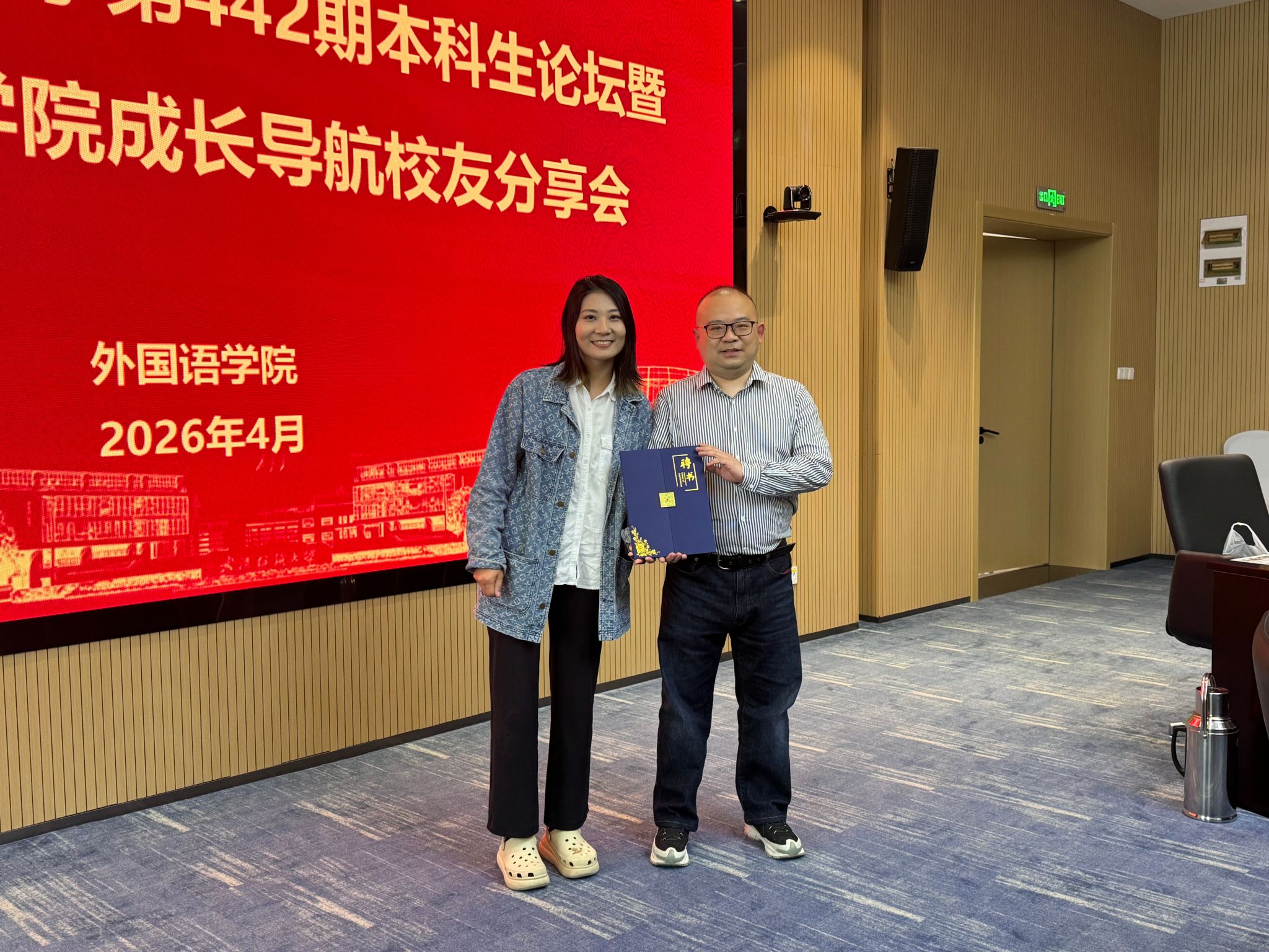 在互动环节中,同学们围绕跨文化实践、AI工具使用、考研方向选择等问题踊跃提问,周杨结合自身经历逐一解答,现场气氛活跃,掌声不断。最后,学院聘任周杨校友为成长导师。此次优秀校友分享会,既是一场经验的传递,更是一次精神的传承,既为ok138cn太阳集团529学子搭建了与优秀前辈交流共进的桥梁,也以跨文化视野为青年学子点亮了成长航向,凝聚起奋进力量,为学院深耕语言人才培养、助力学子全面发展注入了持久动力。