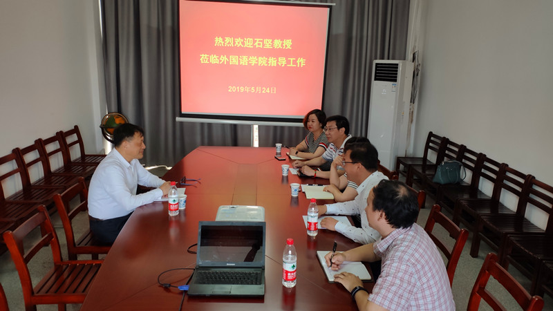 会前,石坚教授与ok138cn太阳集团529领导班子进行了座谈,石教授介绍了四川大学ok138cn太阳集团529的整体情况和办学理念,深入分析了目前英语专业和大学英语教学普遍存在的问题和差距,石教授结合我校的特色与具体做法给出了解决办法和思路。最后,石坚教授强调,大学教育的目标应该是培养学生终身学习的能力、思辨创新的能力和善于表述的能力。学院领导班子表示受益匪浅,深受启发,拓宽了教学和科研思路。