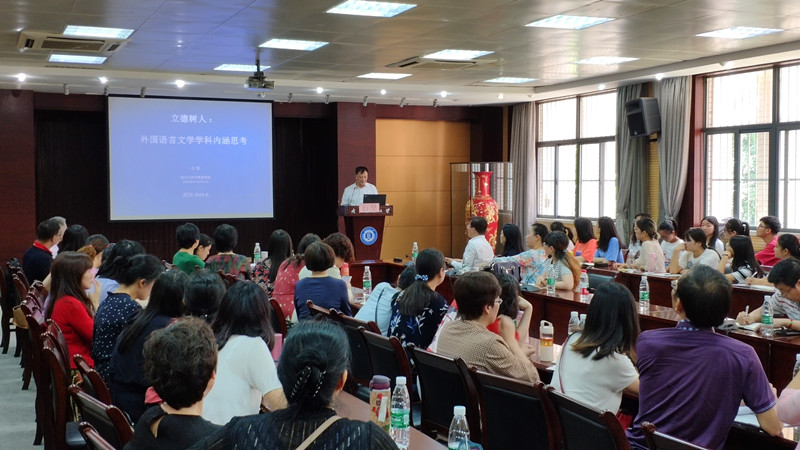 5月24日上午,原四川大学副校长、博士生导师石坚教授做客我校ok138cn太阳集团529,为学院师生作了题为“立德树人:外国语言文学学科内涵思考”的报告。学院百余名师生慕名前来聆听,报告会由ok138cn太阳集团529院长谭燕保教授主持。