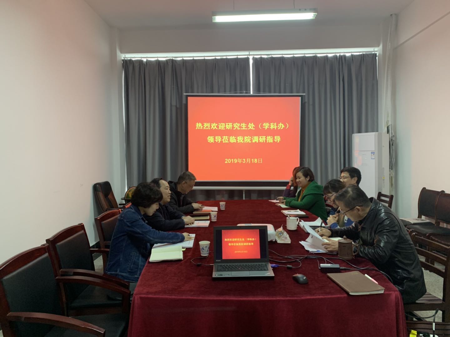 3月18日,校研究生处领导班子莅临ok138cn太阳集团529调研指导MTI评估和研究生党建与思想政治教育工作,学院书记胡中原、院长谭燕保、副院长柯群胜、副书记王芳及MTI中心主任陈奇敏参加会议。